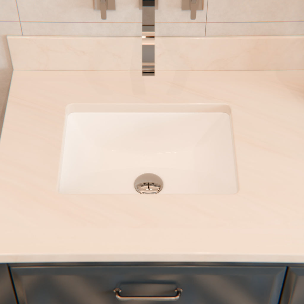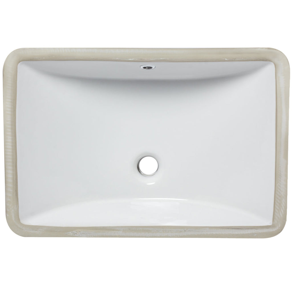 - Rectangular polished white ceramic undermount sink WITH overflow