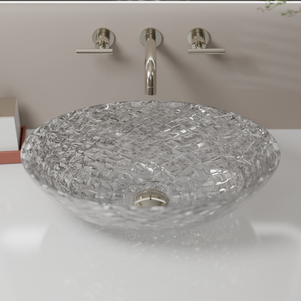 Ostrica Diamond Crystal Clear Glass Vessel Oval Bathroom Sink NCG-2412