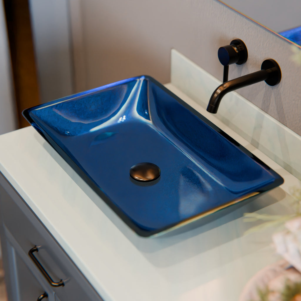Blue Hand-Foiled Rectangle Glass Vessel Bath Sink TIG-S132-199