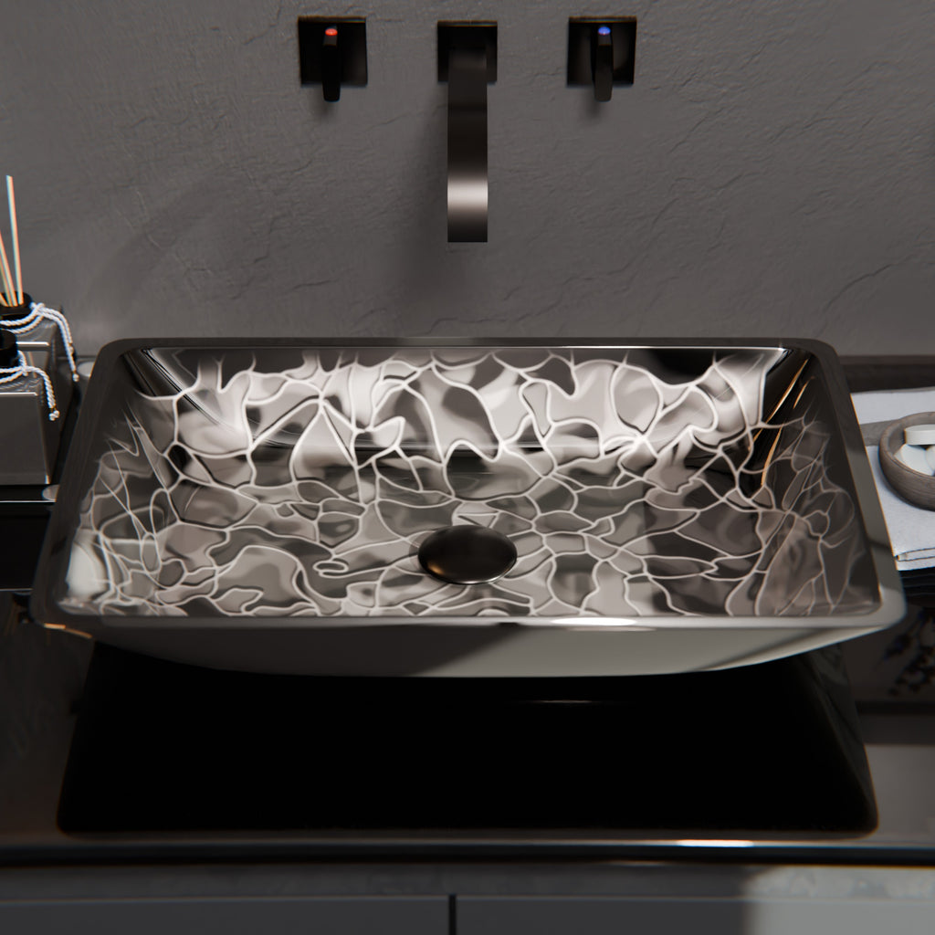 Hand Painted Black and Silver Rectangle Glass Vessel Bath Sink NOHP-G012-199