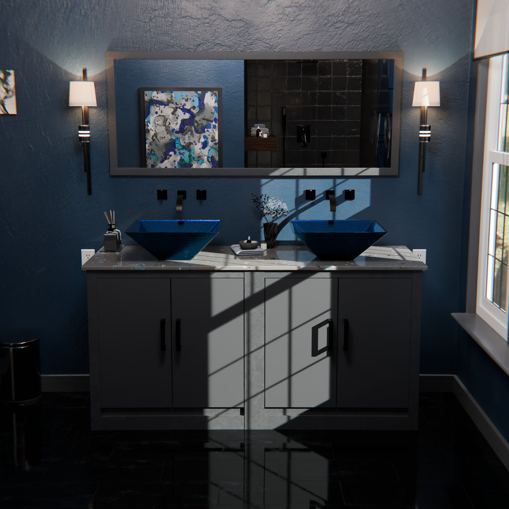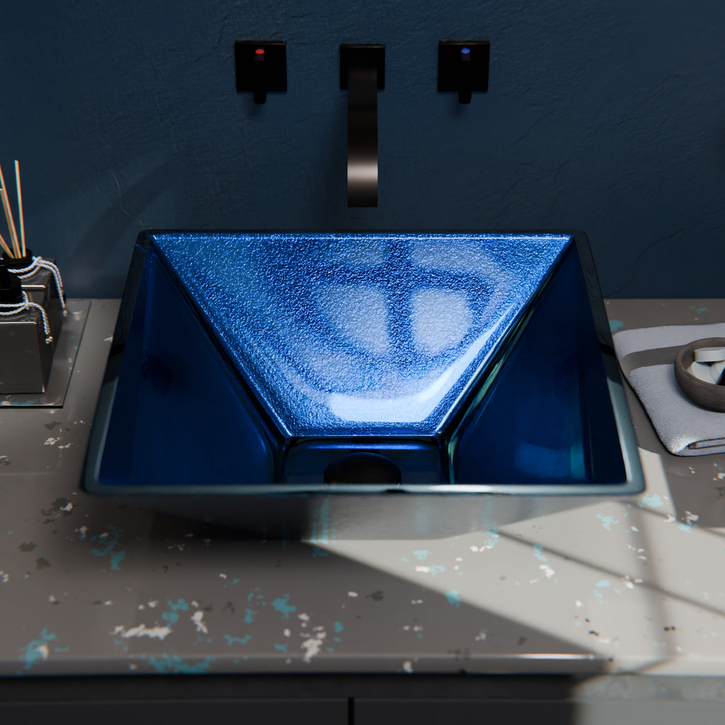 Blue Foiled Square Tempered Glass Vessel Bath Sink TIG-S132-287
