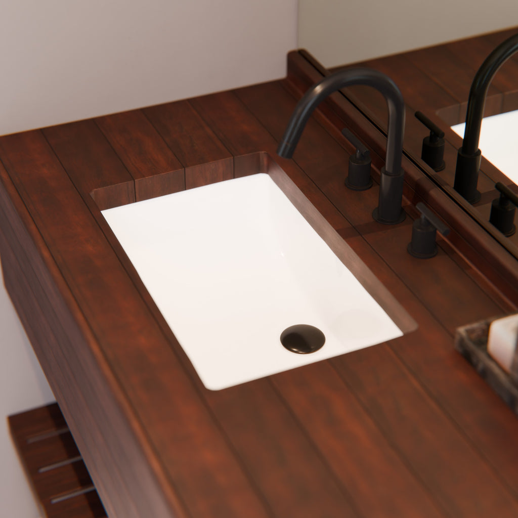 Extra Wide Rectangular Undermount White Porcelain Sink with Overflow, NP-U213907