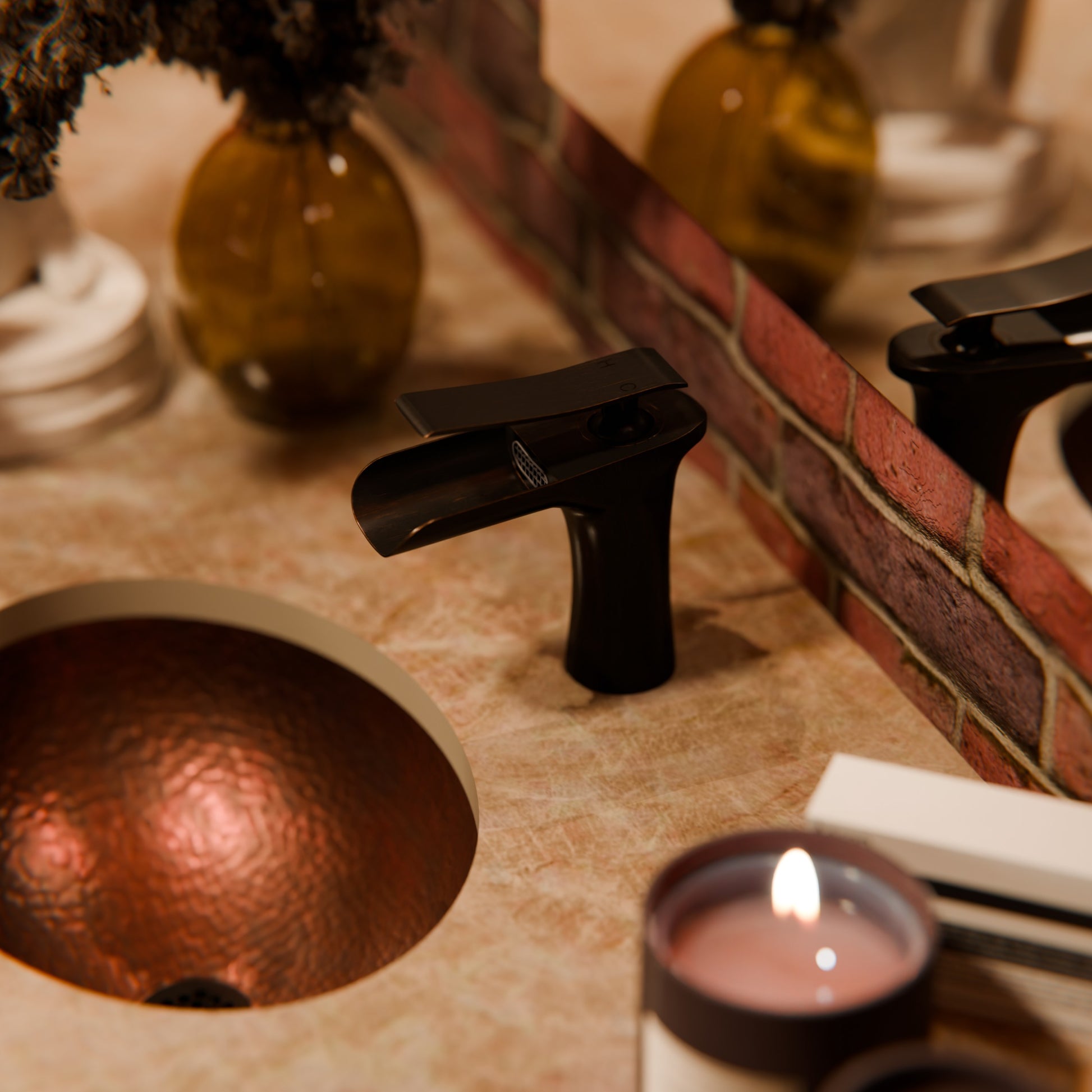 We appreciate the opportunity to serve you and be a part of your home. The VANDY lav faucet combines elegant style, premium quality, and lifelong value for any bath or powder room. This designer faucet from Novatto is designed to accommodate under-mount or drop-in sinks. The water runs over the spout creating a miniature waterfall. A single lever controls the water temperature and water pressure. Durable and easy to clean, this faucet is constructed of solid brass with lifelong finishes.