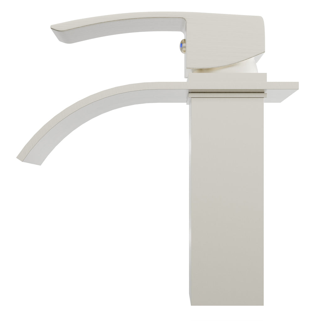 The REMI lav faucet combines style, quality, and value for any bath or powder room. This designer faucet from Novatto is designed to accommodate undermount or drop-in sinks. The water runs through the three-inch-wide spout creating a miniature waterfall. A single lever controls the water temperature and water pressure. Durable and easy to clean, the REMI faucet is constructed of solid brass with lifelong finishes. A high-pressure ceramic cartridge ensures longevity and trouble-free use. ** WaterSaver (WS) options available - 1.2GPM.