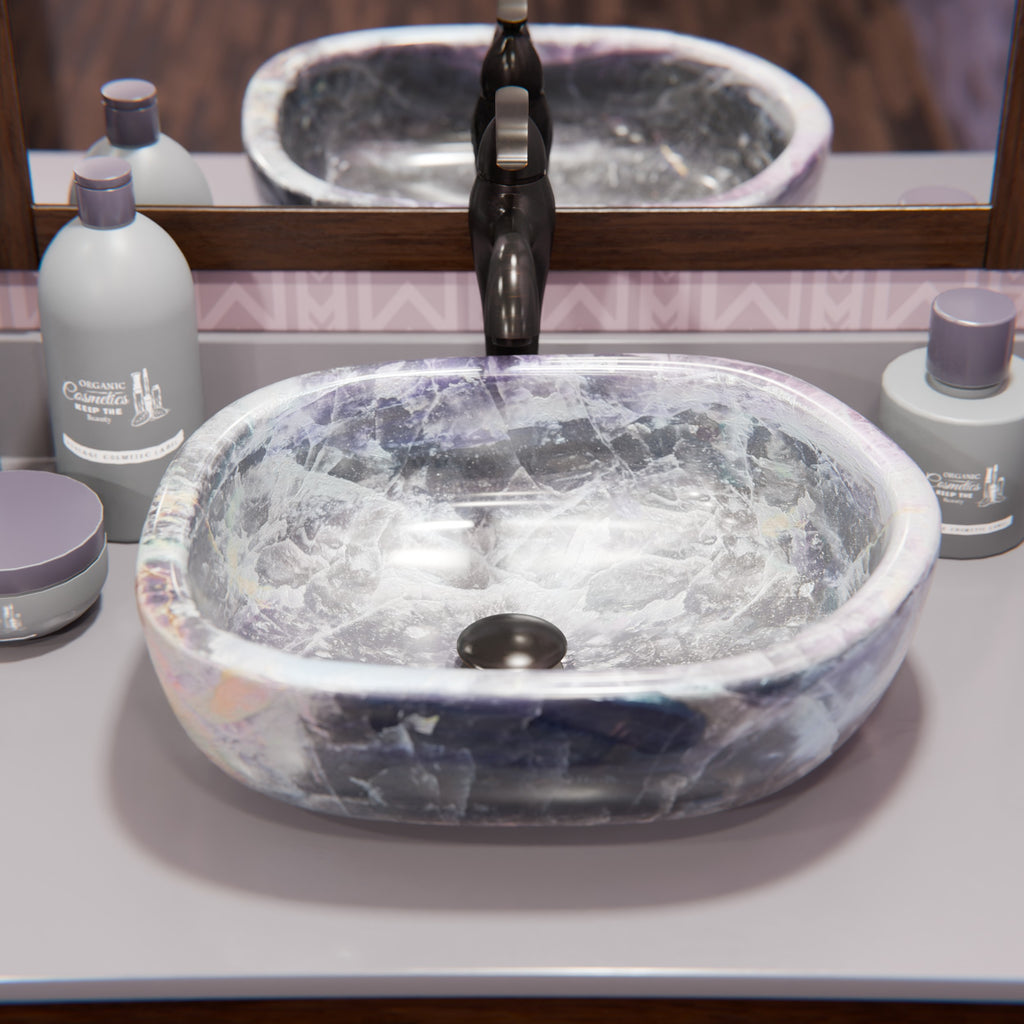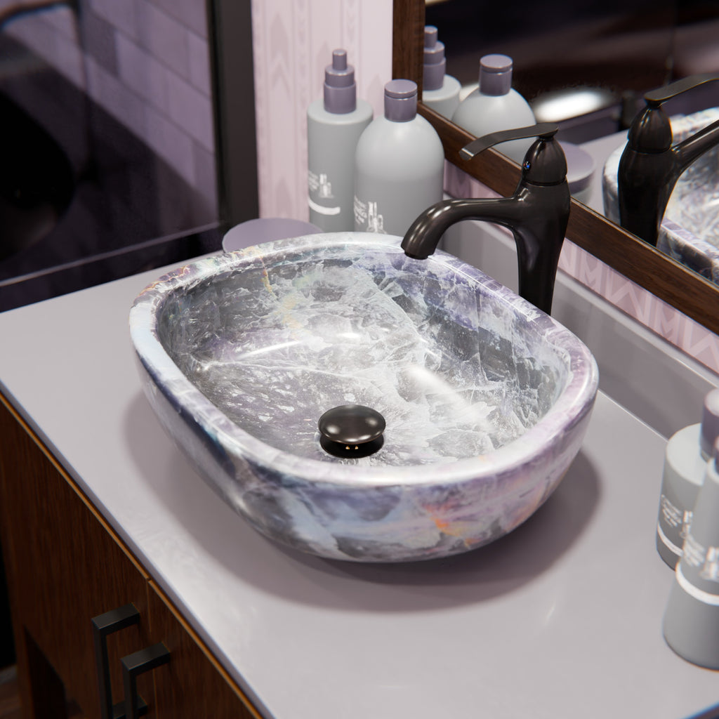 Beauty has no limits! Novatto's purple onyx vessels are sure to add a touch of charm to your bath. These natural purple cobblestone-like vessels come from around the world, giving you a one-of-a-kind bath masterpiece. The inside and outside are honed and hand-polished to perfection. Since these are from Mother Nature, each sink will vary slightly in color, shape, and size.We will send pictures of the one we intend to send for approval. Make sure we have your phone number and email address.
