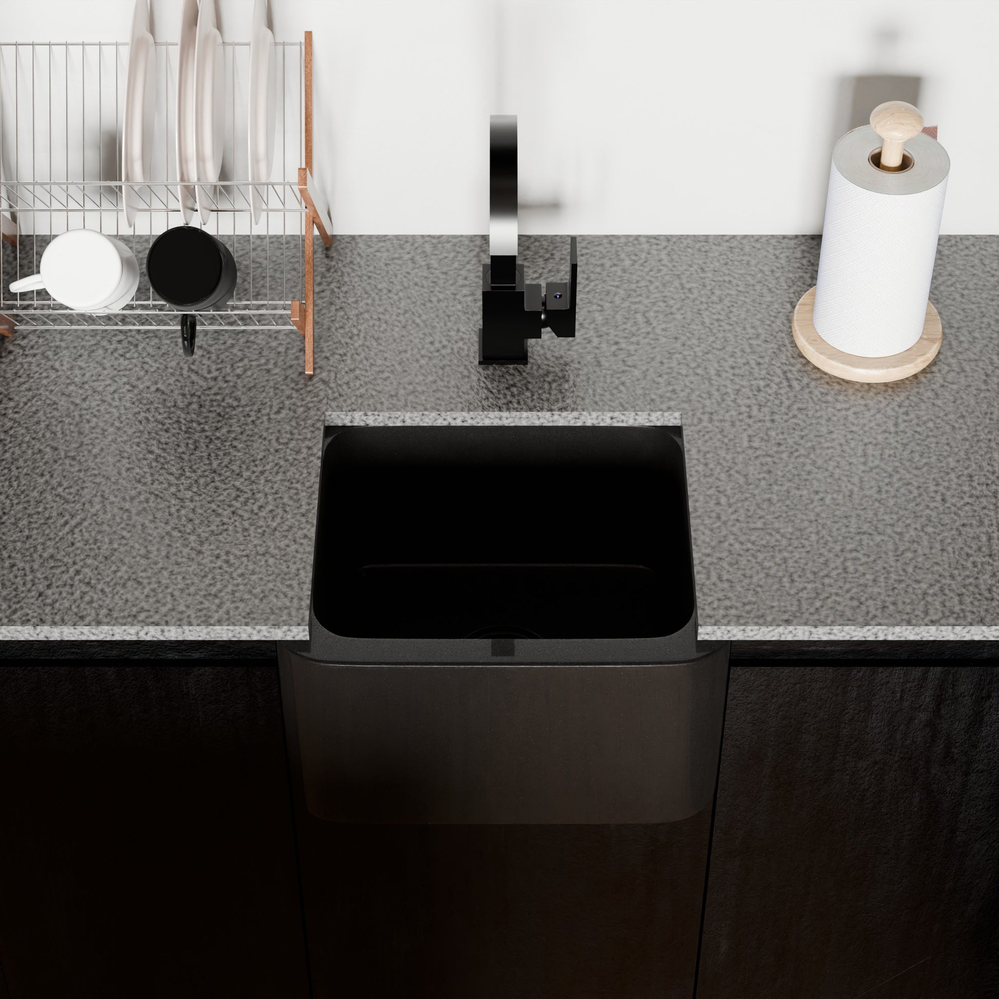 18-inch Single Bowl Black Granite Bar Sink with Apron - NKS-18SBPAN