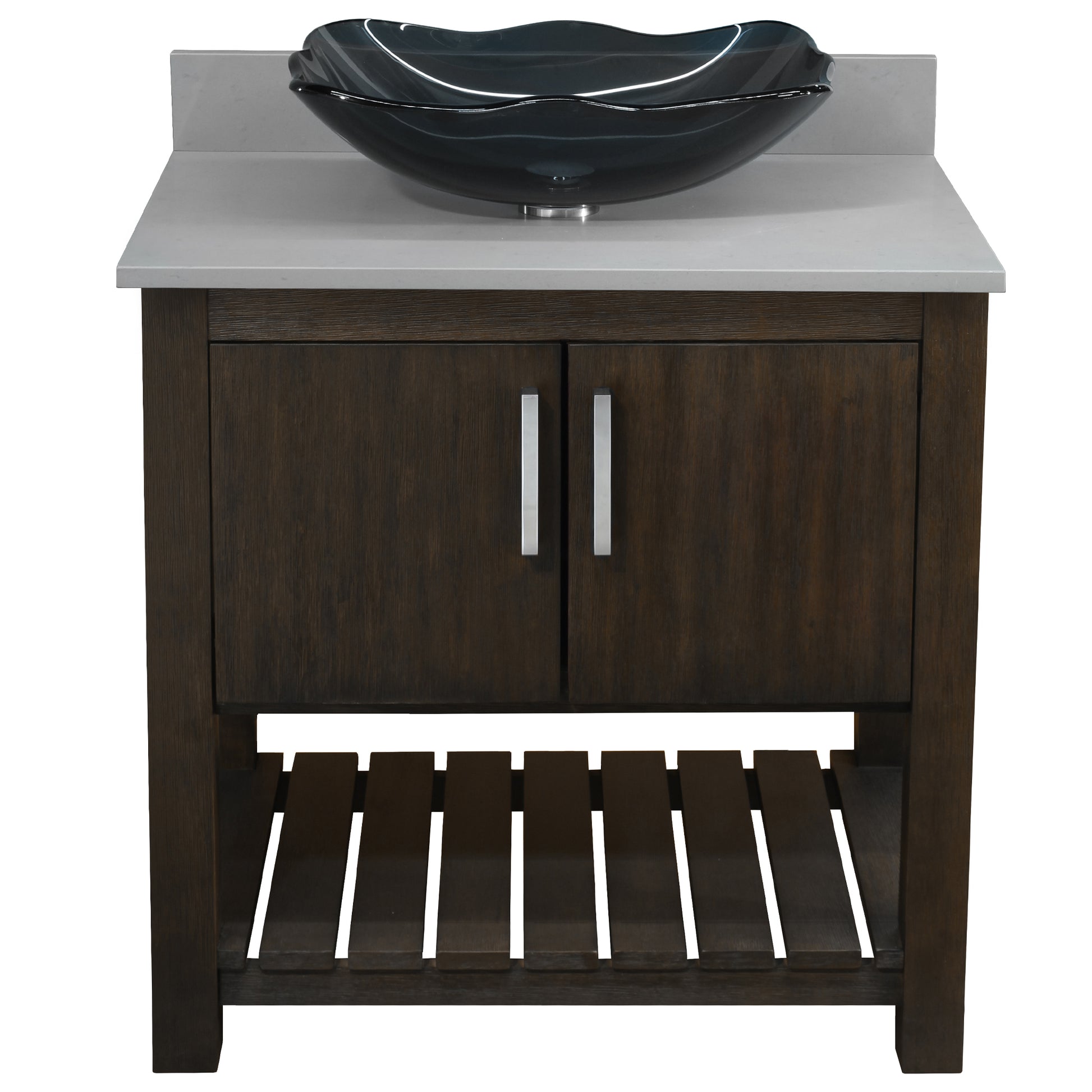 30-inch Bath Vanity with Storm Grey Quartz Counter and Sink - NOBV-30CM-280-317G