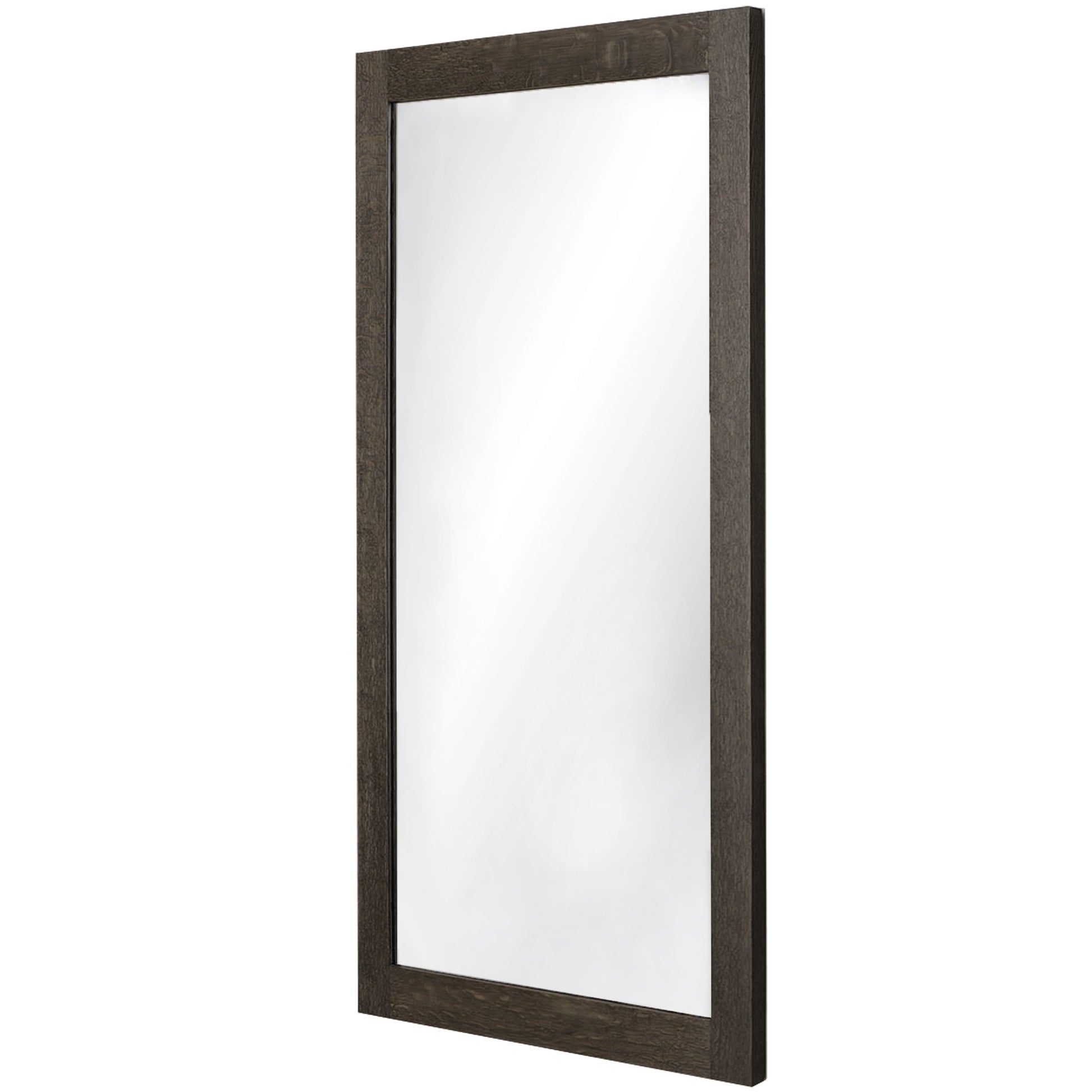 - Vanity's wood finish is a rich Café Mocha