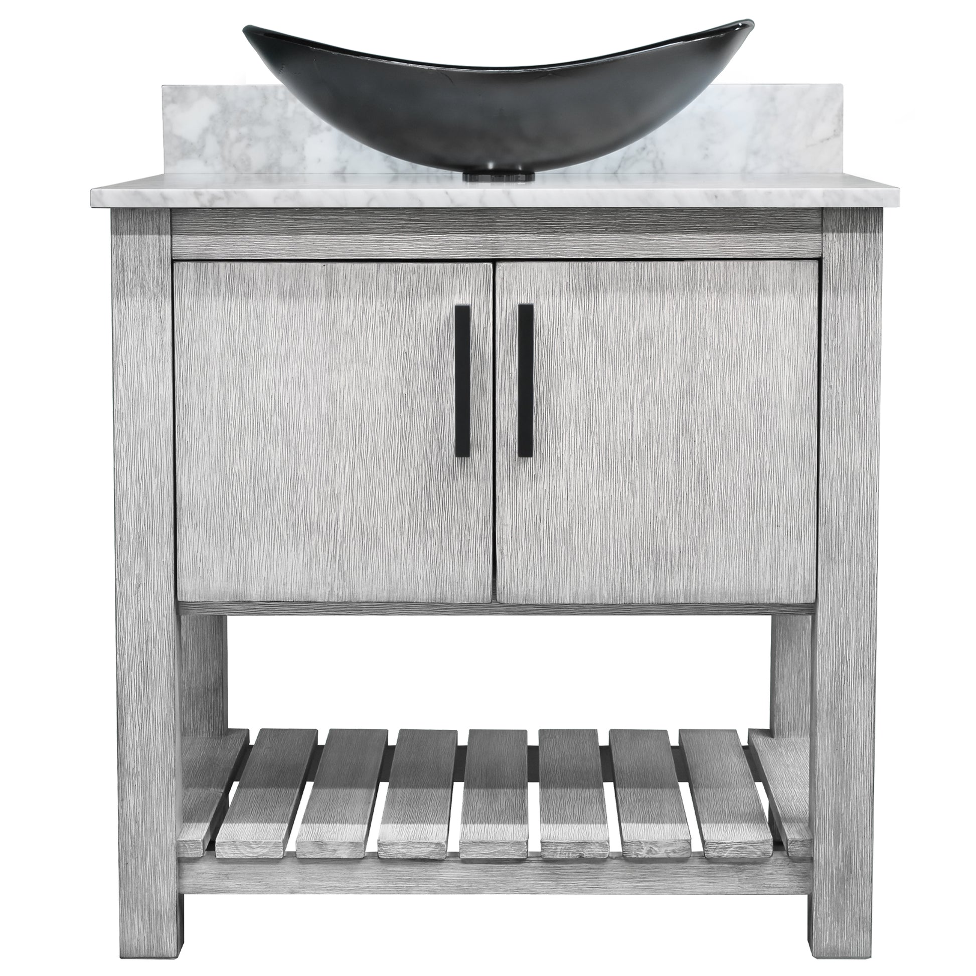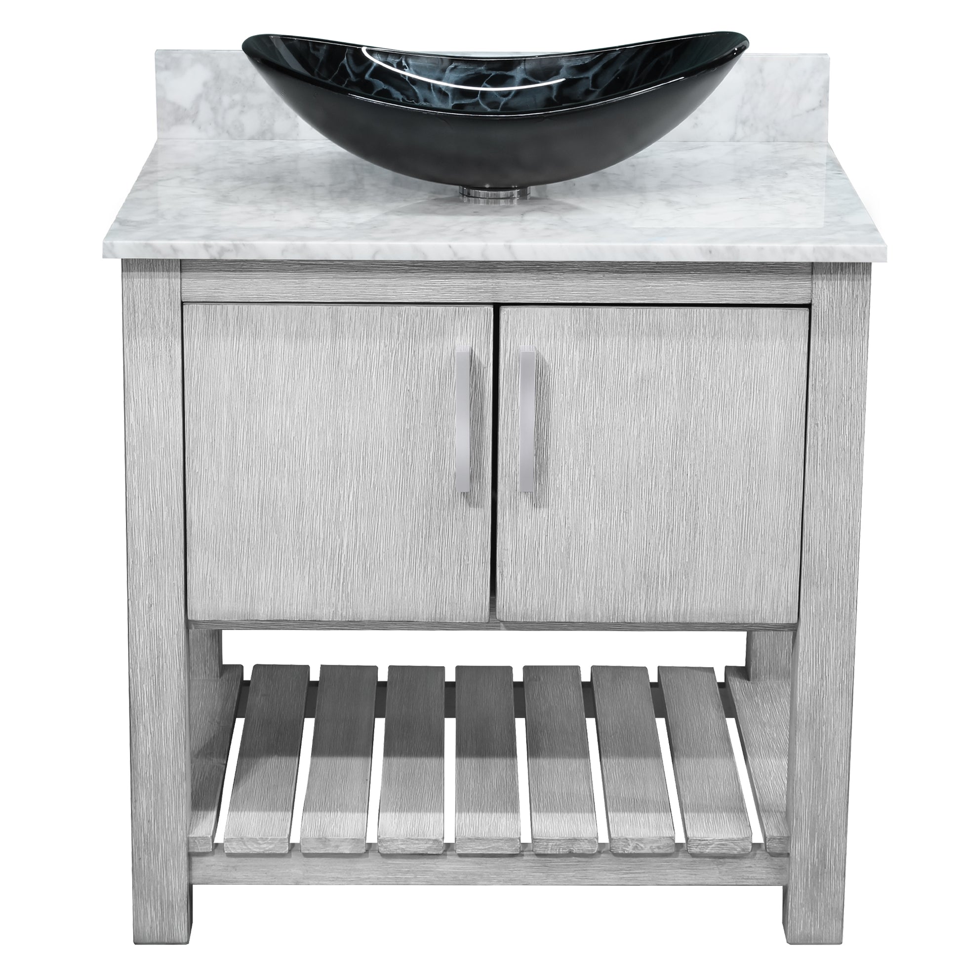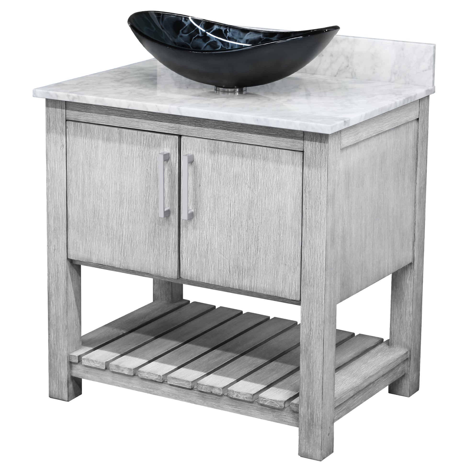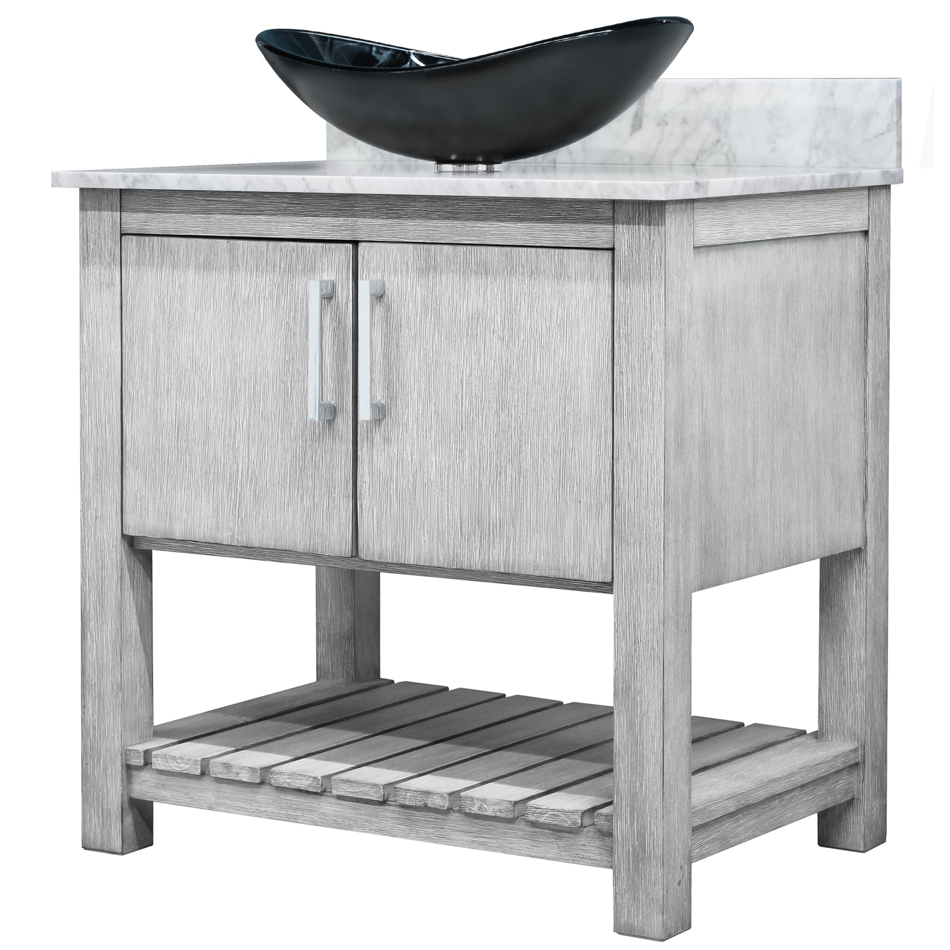 30-inch Bath Vanity with Carrara White Marble Counter and Sink, NOBV-30SG-CAR-G012-8031