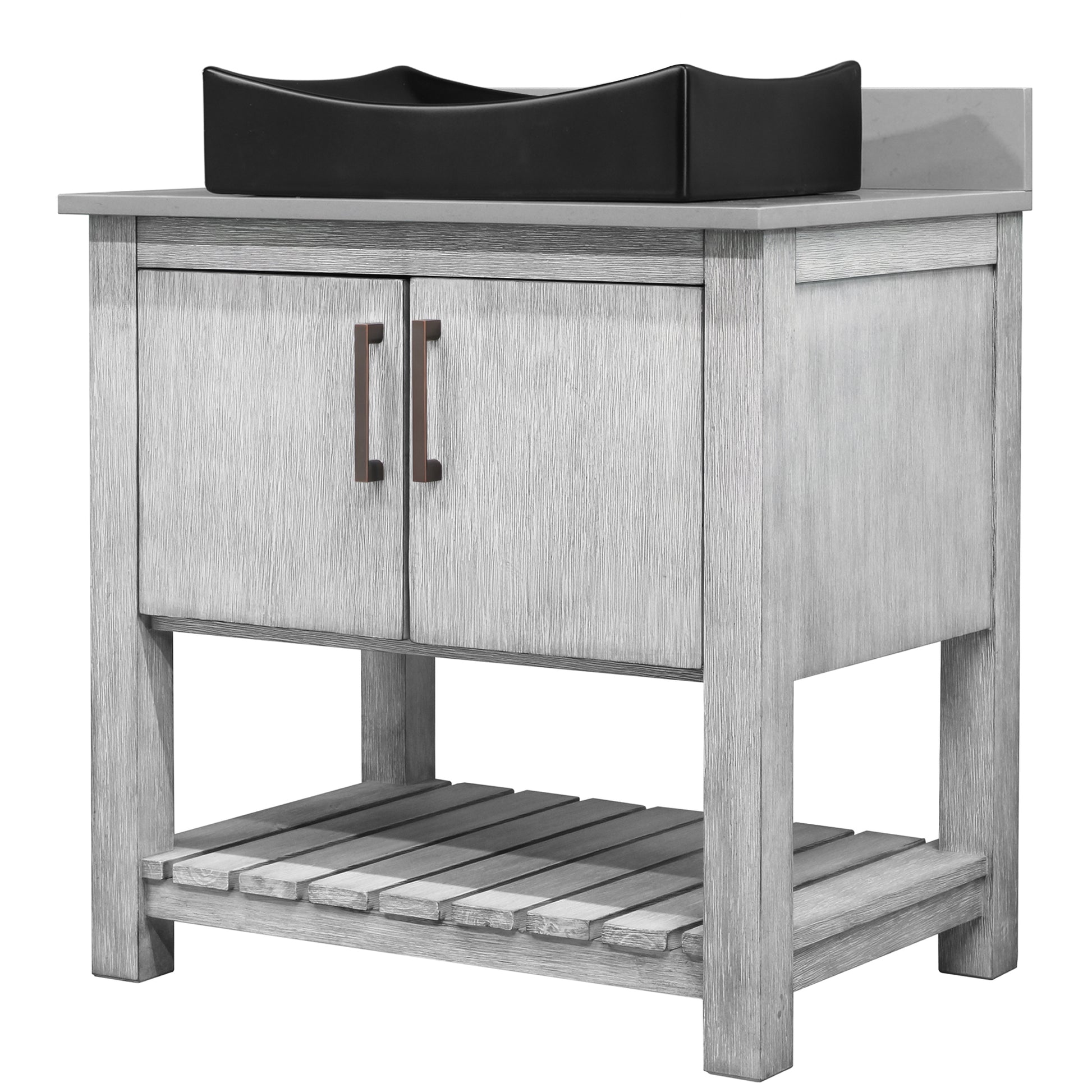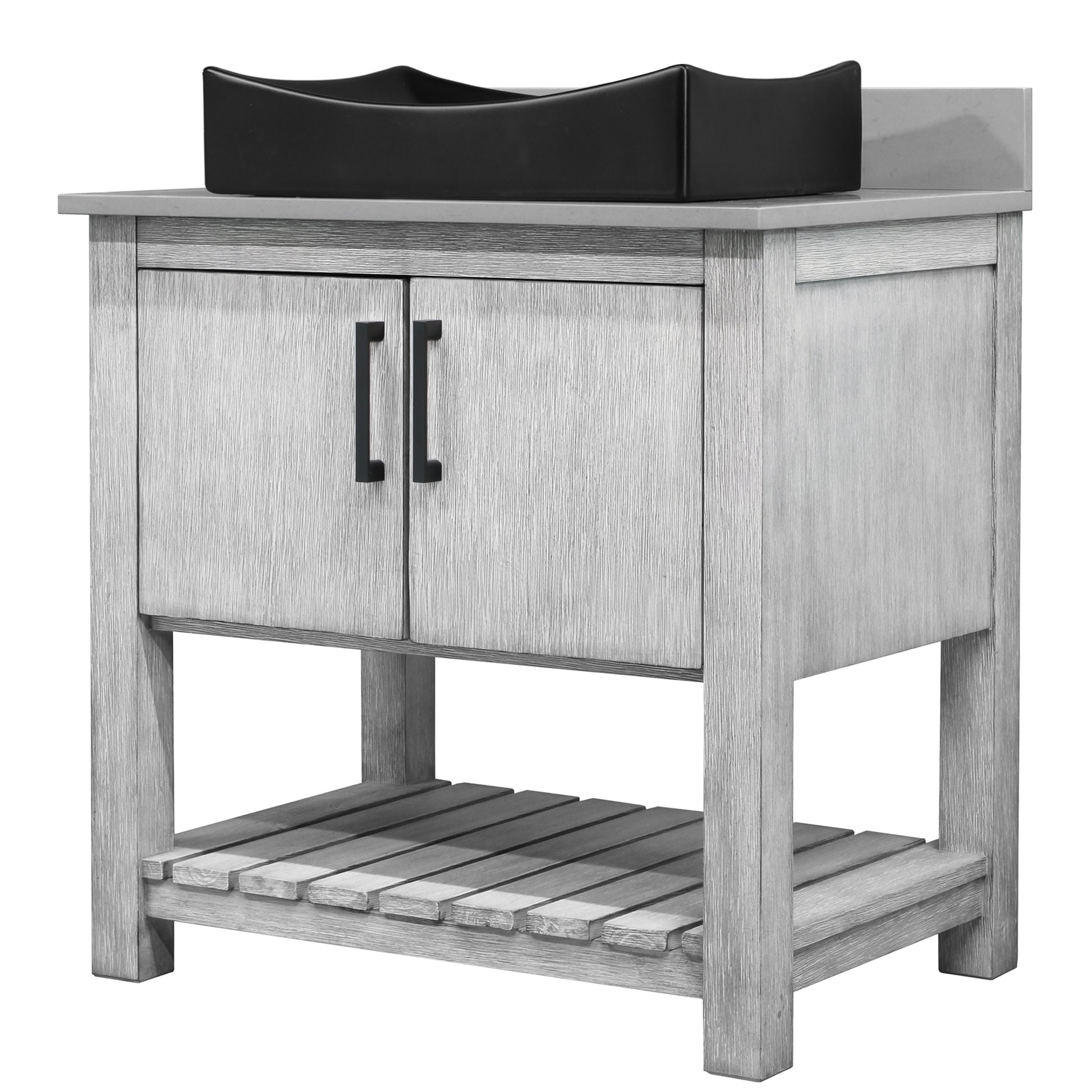 30-inch Bath Vanity with Storm Grey Quartz Counter and Sink - NOBV-30SG-280-01141MB