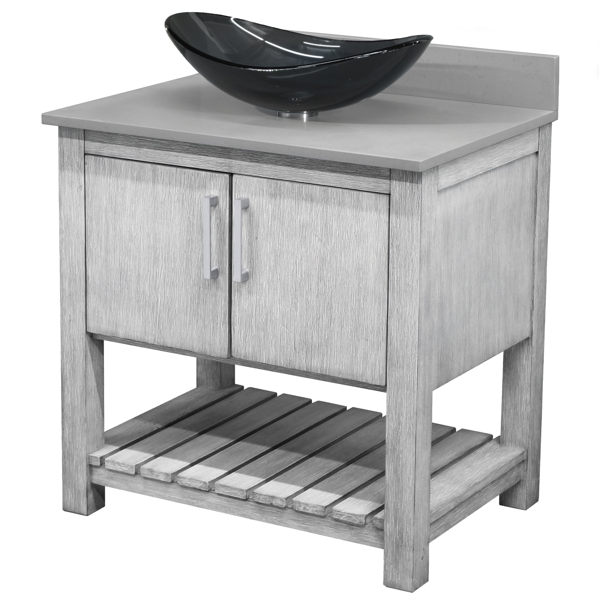 30-inch Bath Vanity with Storm Grey Quartz Counter and Sink - NOBV-30SG-280-324G