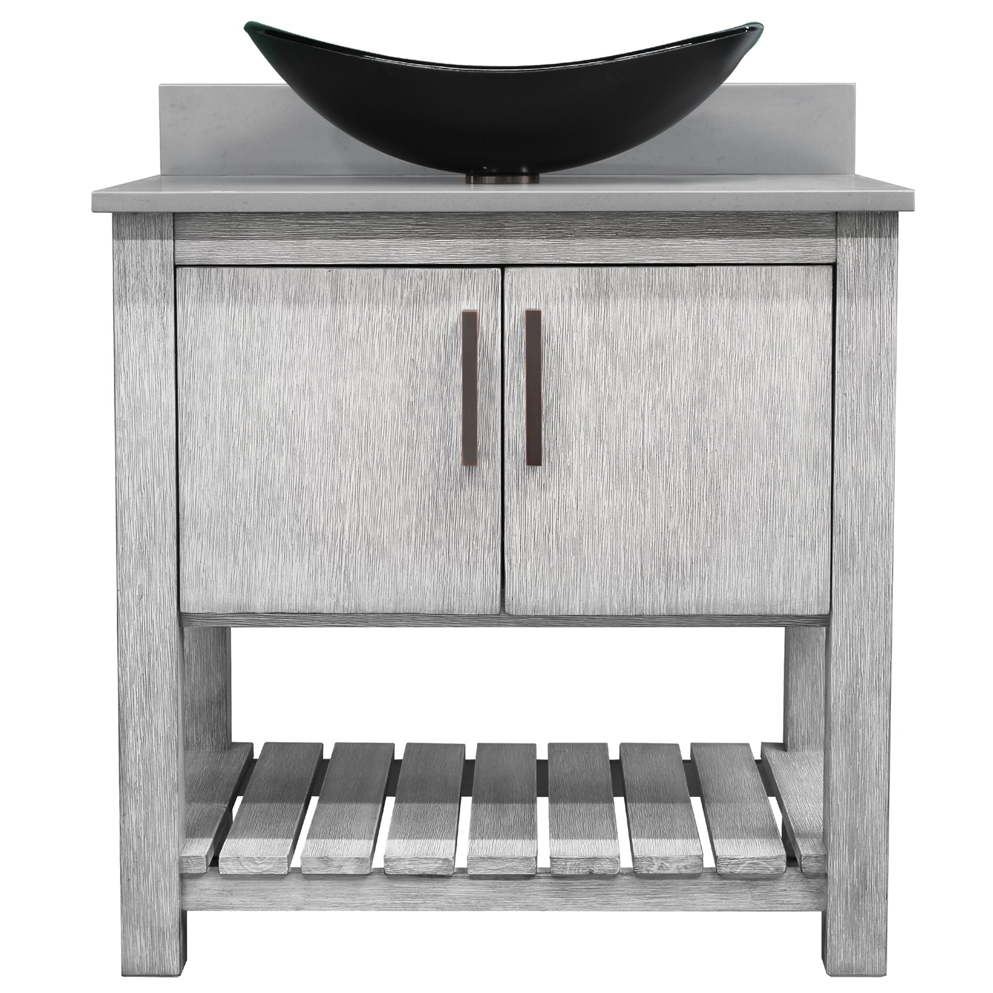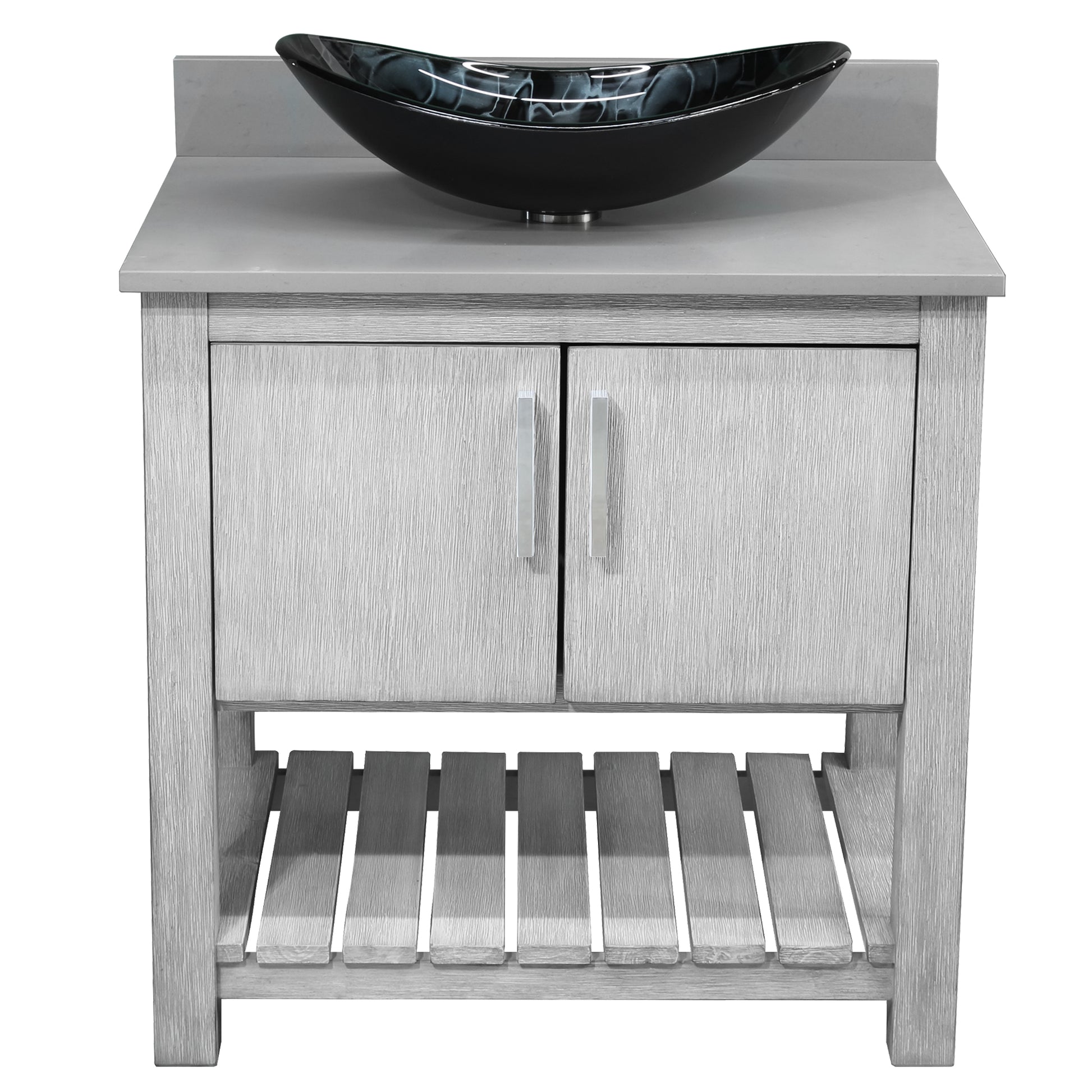 30-inch Bath Vanity with Storm Grey Quartz Counter and Sink - NOBV-30SG-280-G012-8031