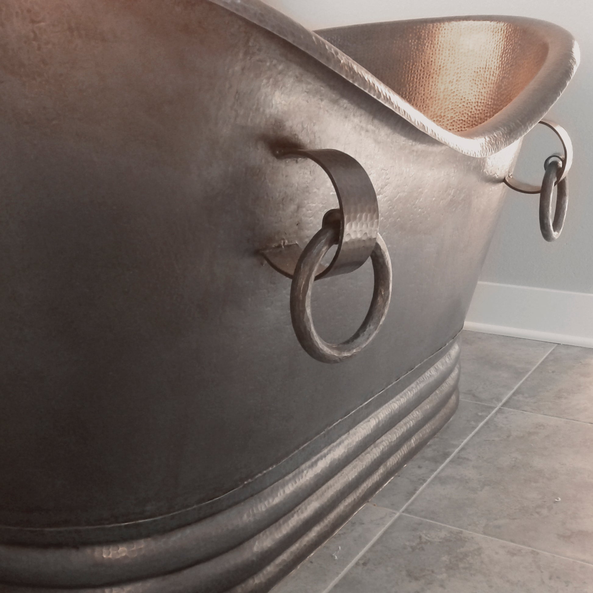 The Adamo freestanding slipper tub is hand-hammered from recycled copper by master artisans. Through years of skill and experience passed down from previous generations, the result is a one-of-a-kind work of art. Made from 16 gauge copper, the Adamo copper tub has a warm antique finish and is hammered to perfection.