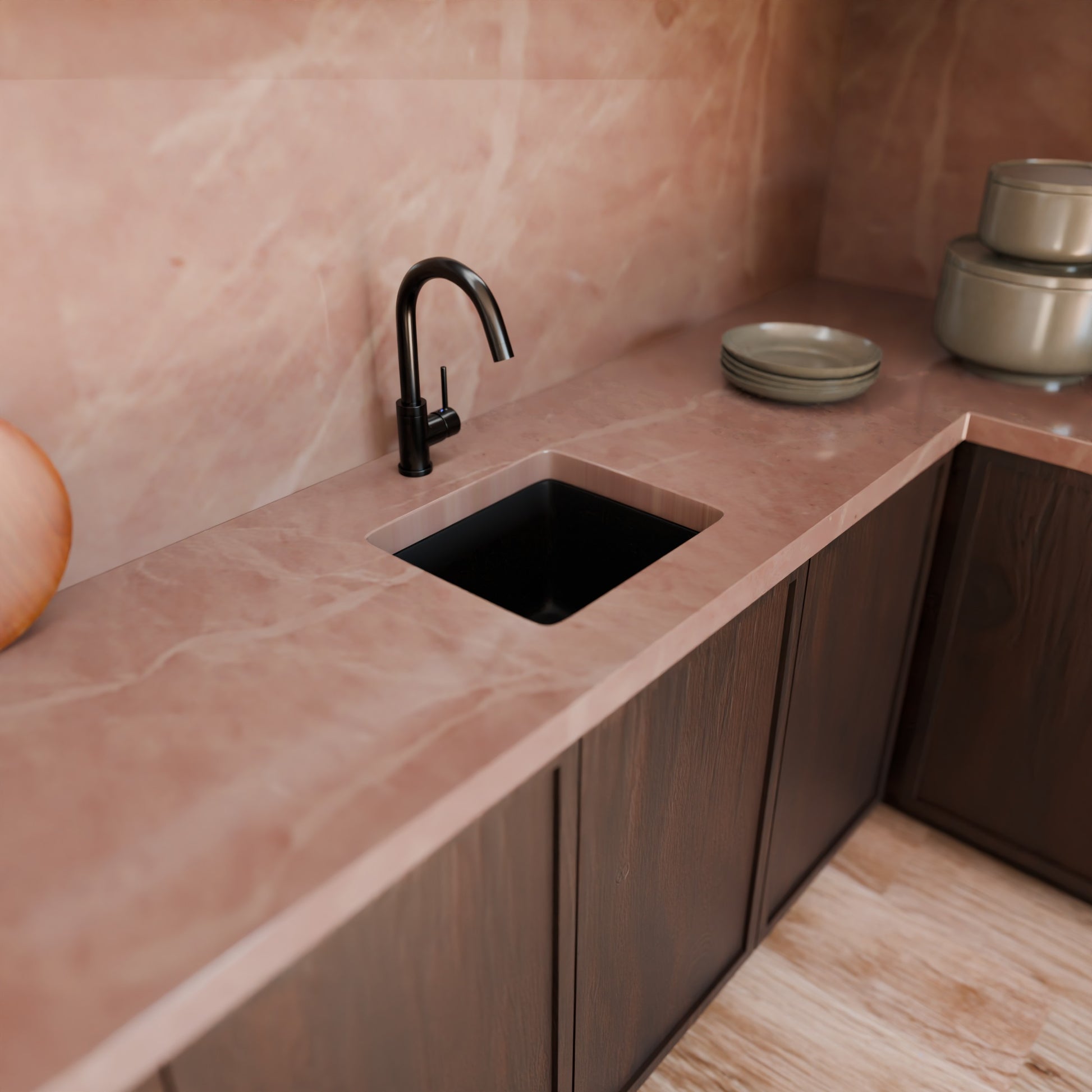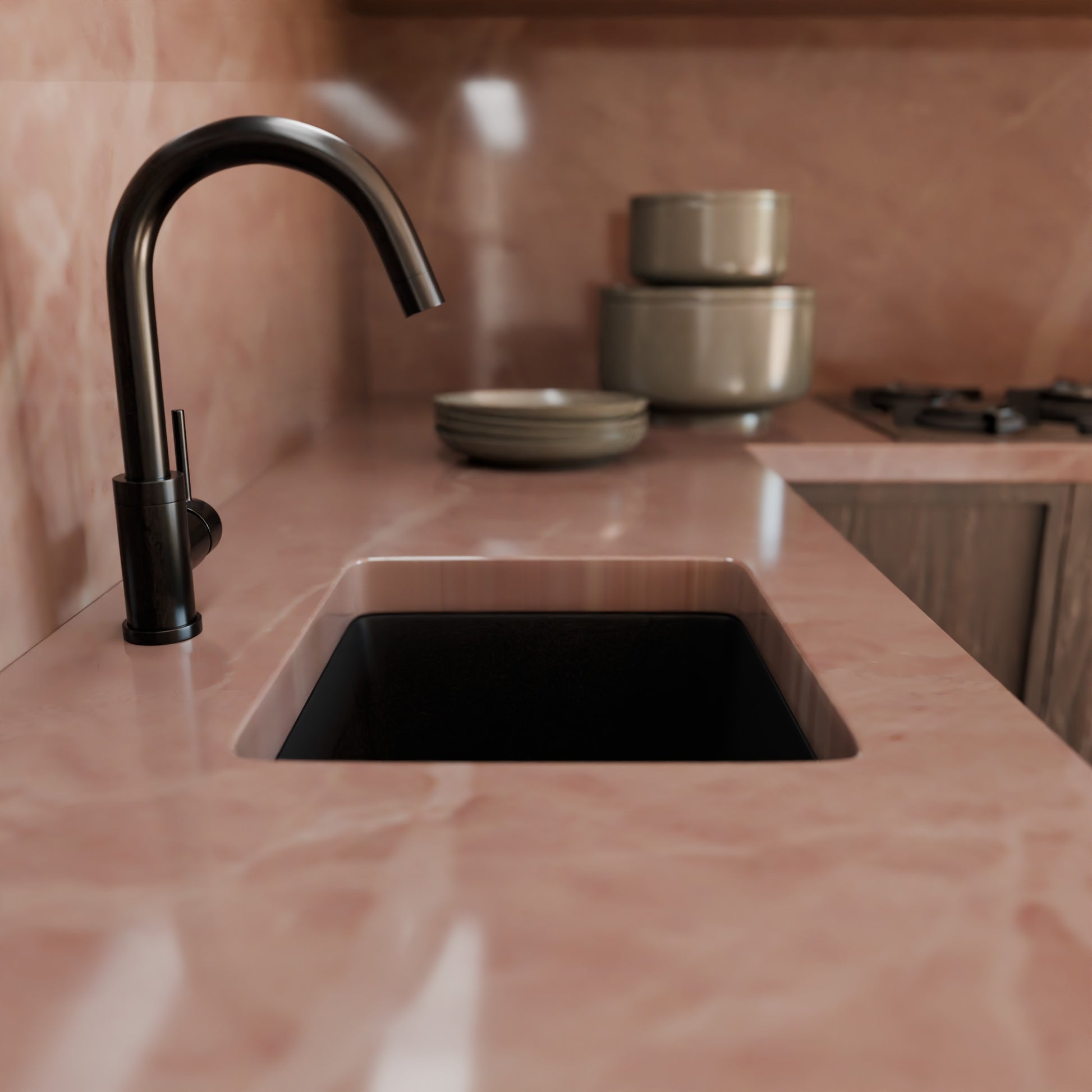 Discover the perfect blend of practicality and style with Novatto's BAJA granite composite bar sinks. Novatto's advanced technology combines natural quartz with pure acrylic resins to provide deep, rich colors and UV stabilization, ensuring the sink looks new for years to come. Offered in five stunning seamless colors: absolute black, white, expresso, sand, and ash.