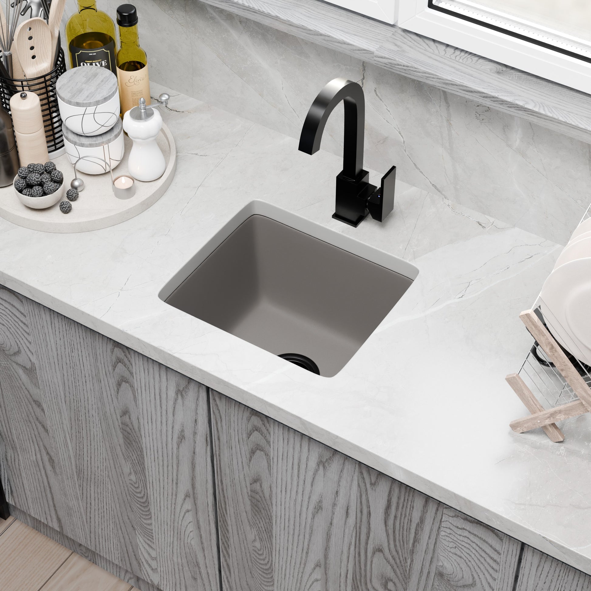 BAJA 18" x 16" Granite Composite Bar Sink in Ash - NKGC-SBBAR-AS