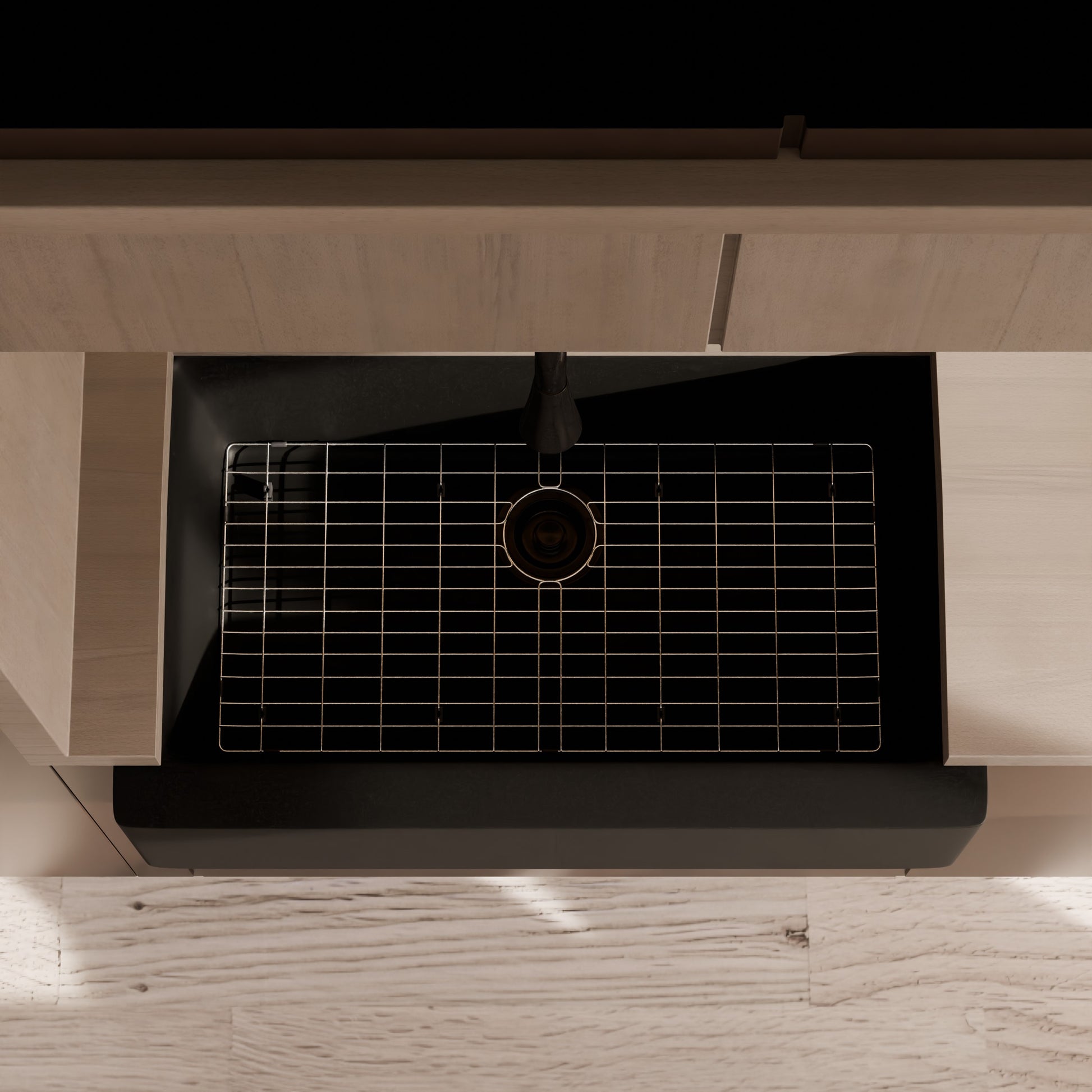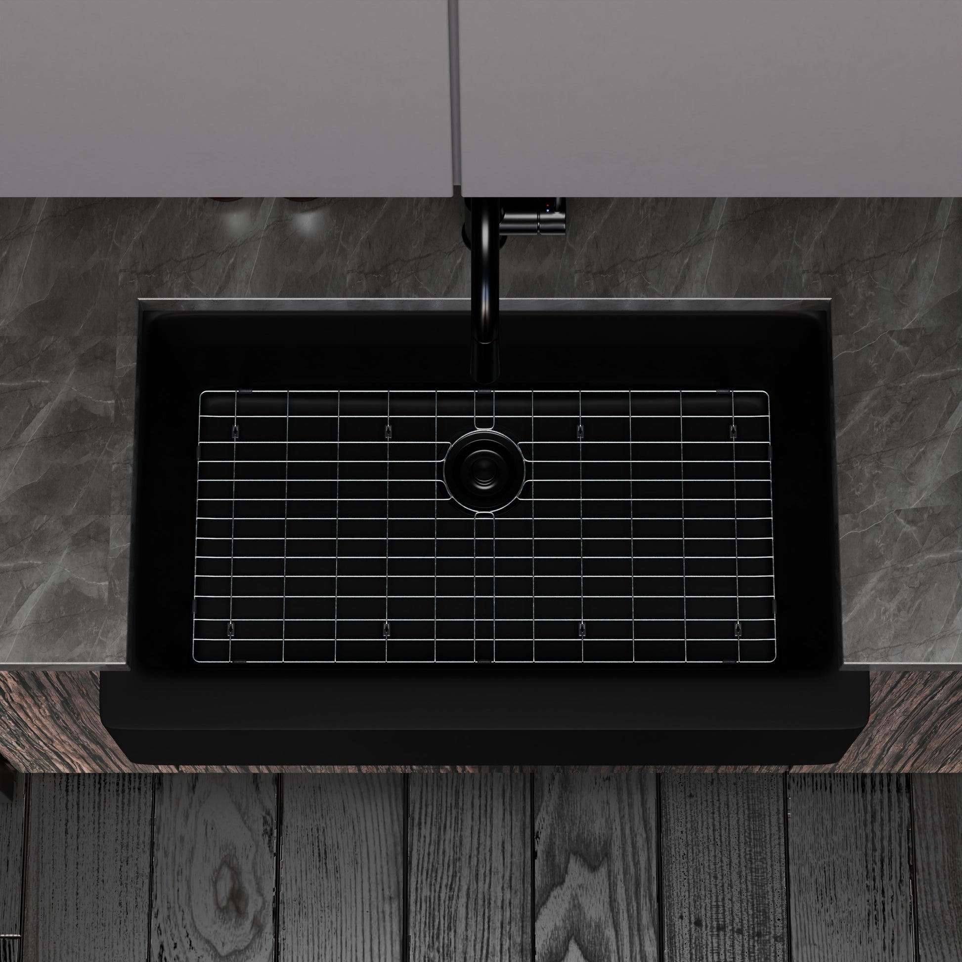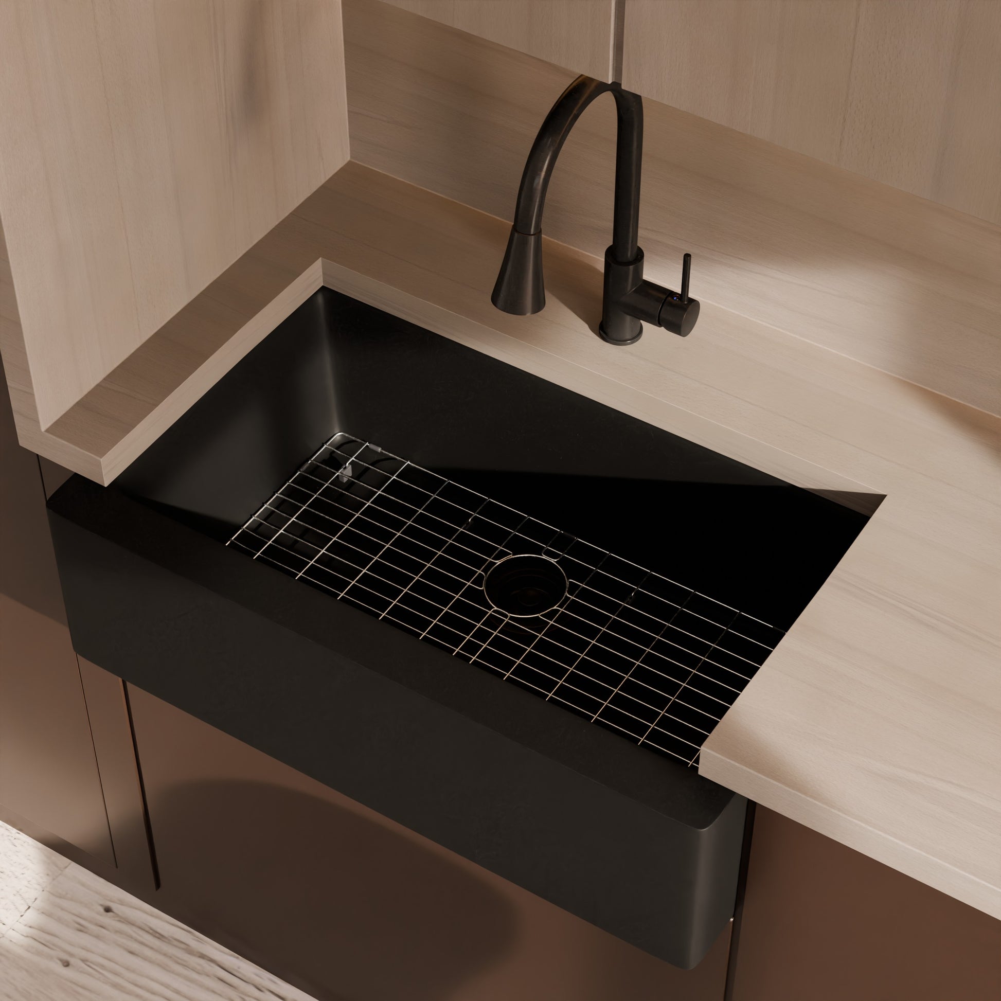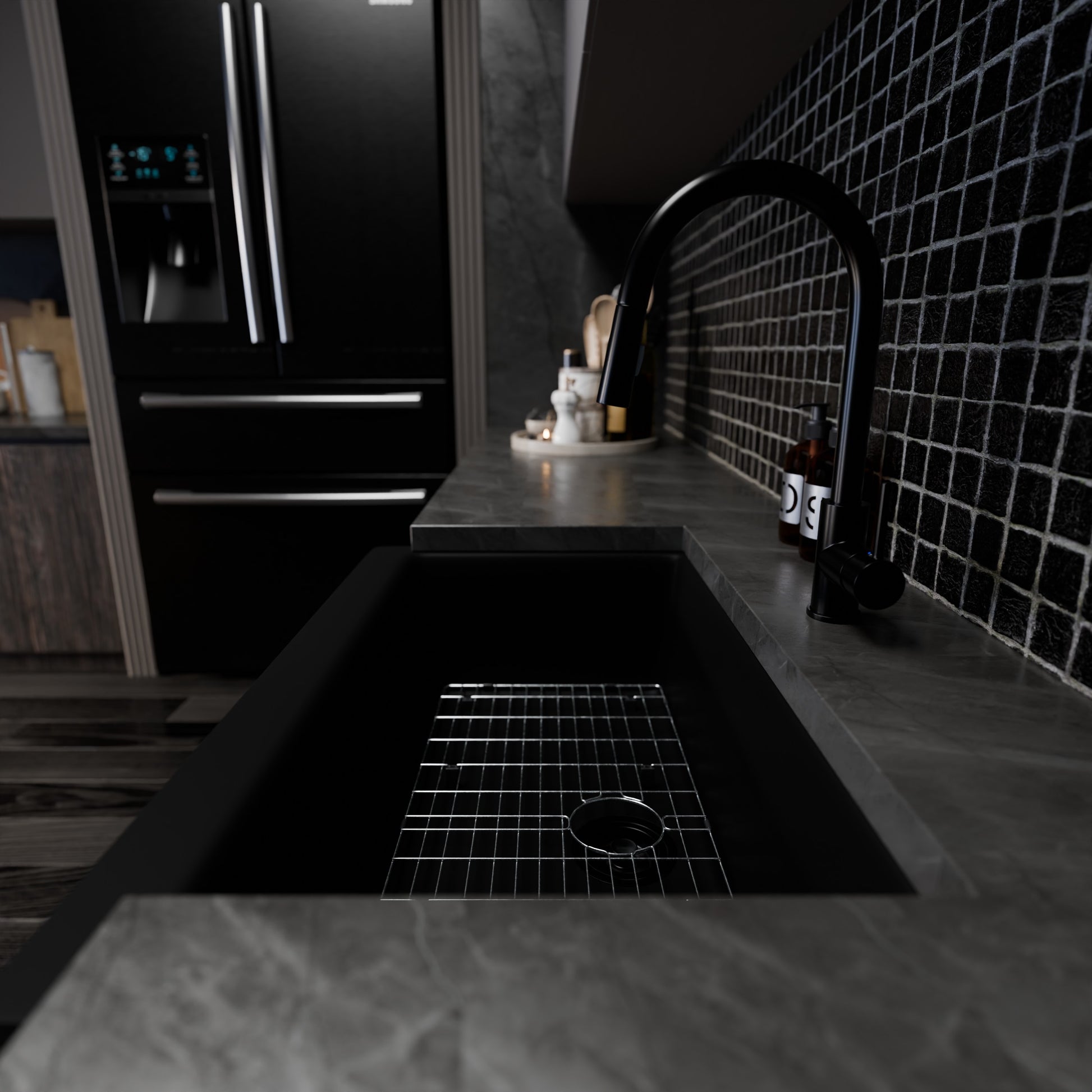 Single Bowl Farmhouse Granite Composite Sink in Absolute Black - NKGC-SBFARM-AB