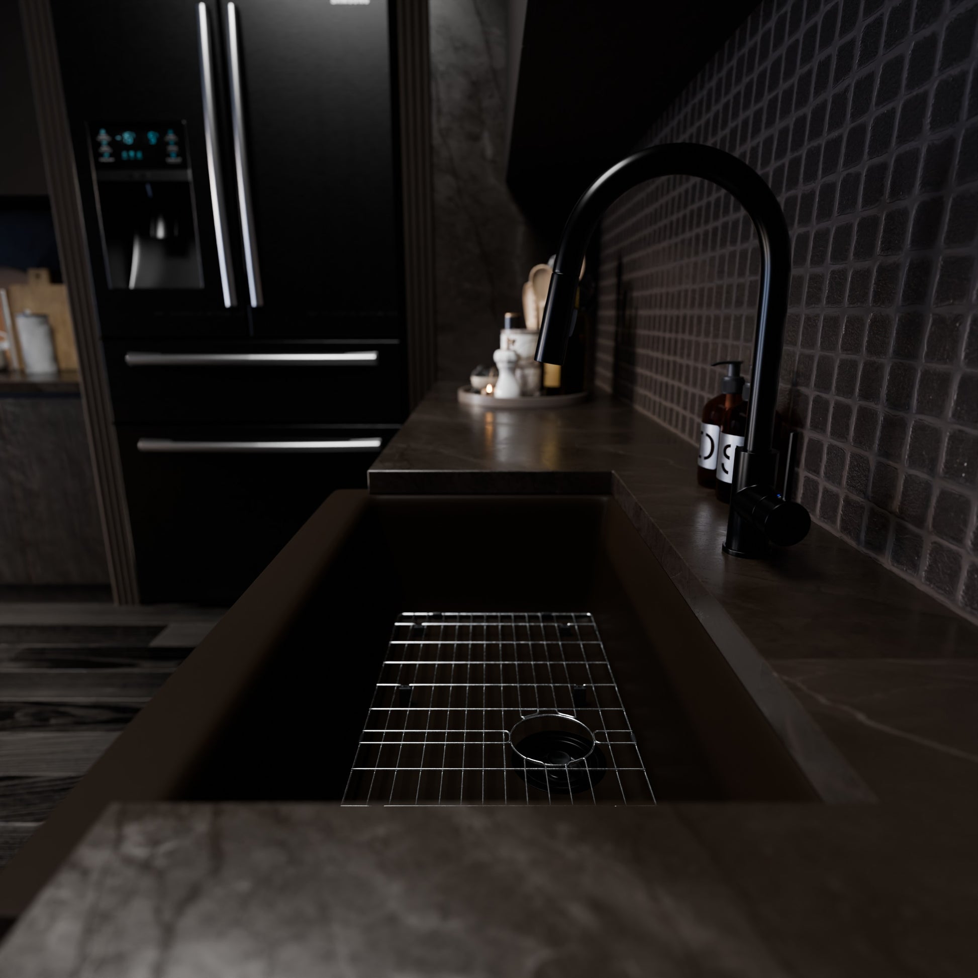 - Expresso tinted granite composite kitchen sink