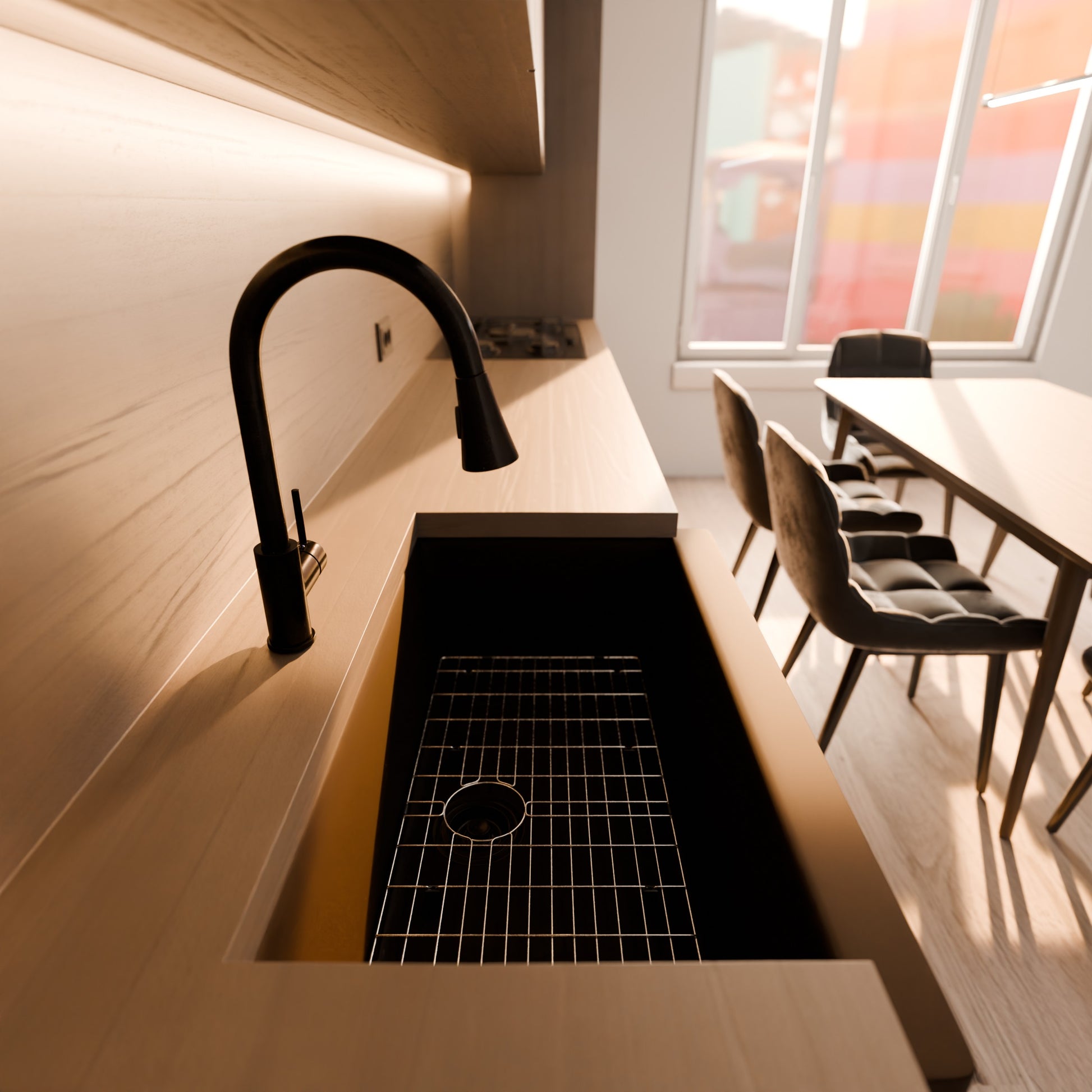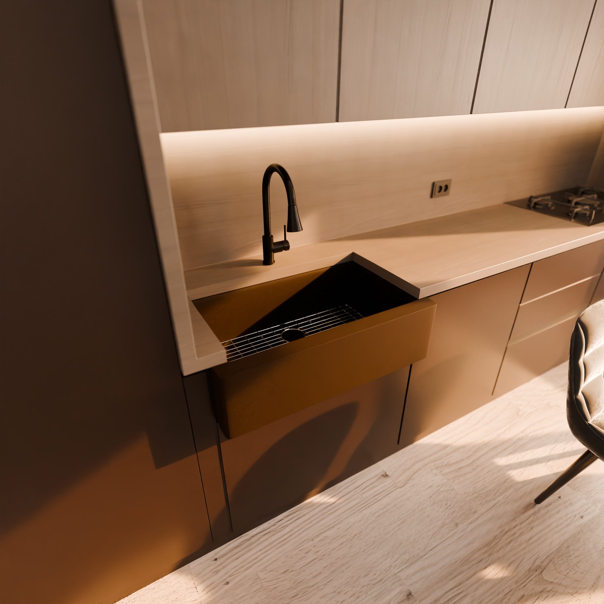 Discover the perfect harmony of practicality and style with Novatto's BAJA granite composite kitchen sinks. This classic farmhouse sink, available in four seamless hues, is crafted using Novatto’s advanced technology. Combining natural quartz with pure acrylic resins, it provides deep, rich colors and UV stabilization to keep the sink looking new for years.