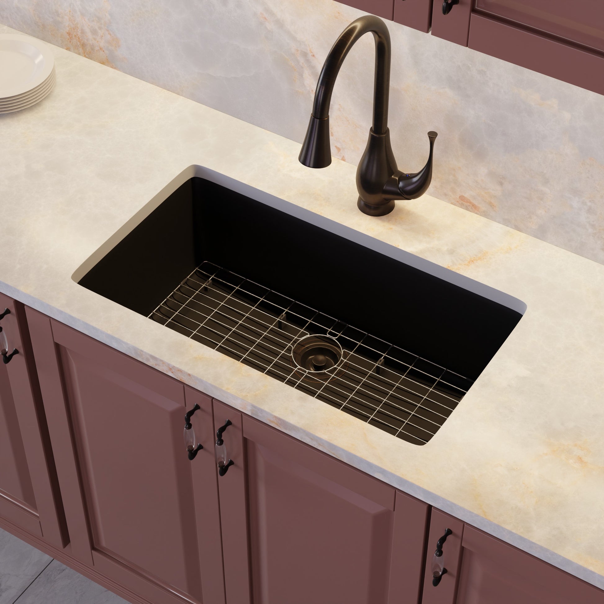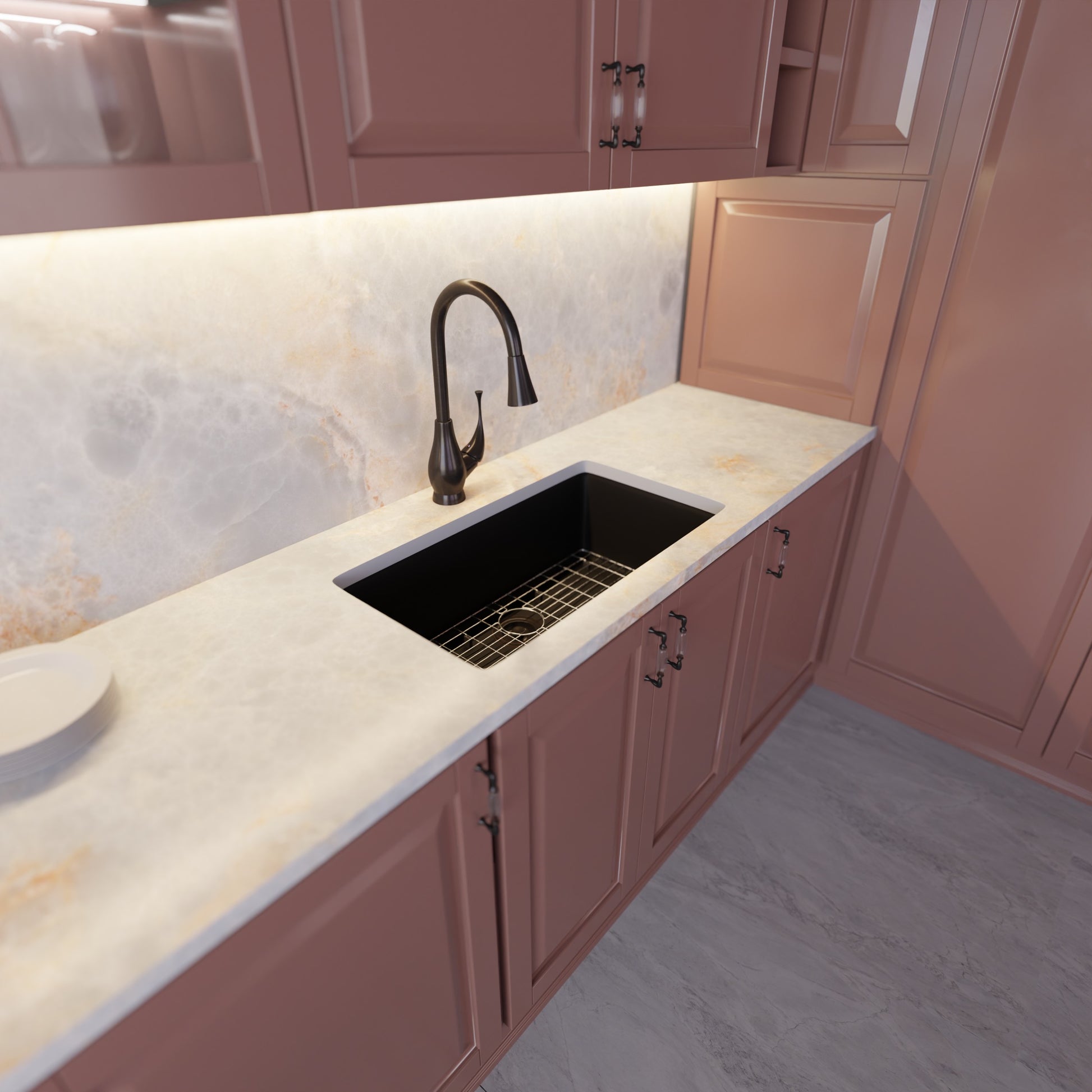 Single Bowl Undermount Granite Composite Sink in Absolute Black - NKGC-SBUND-AB