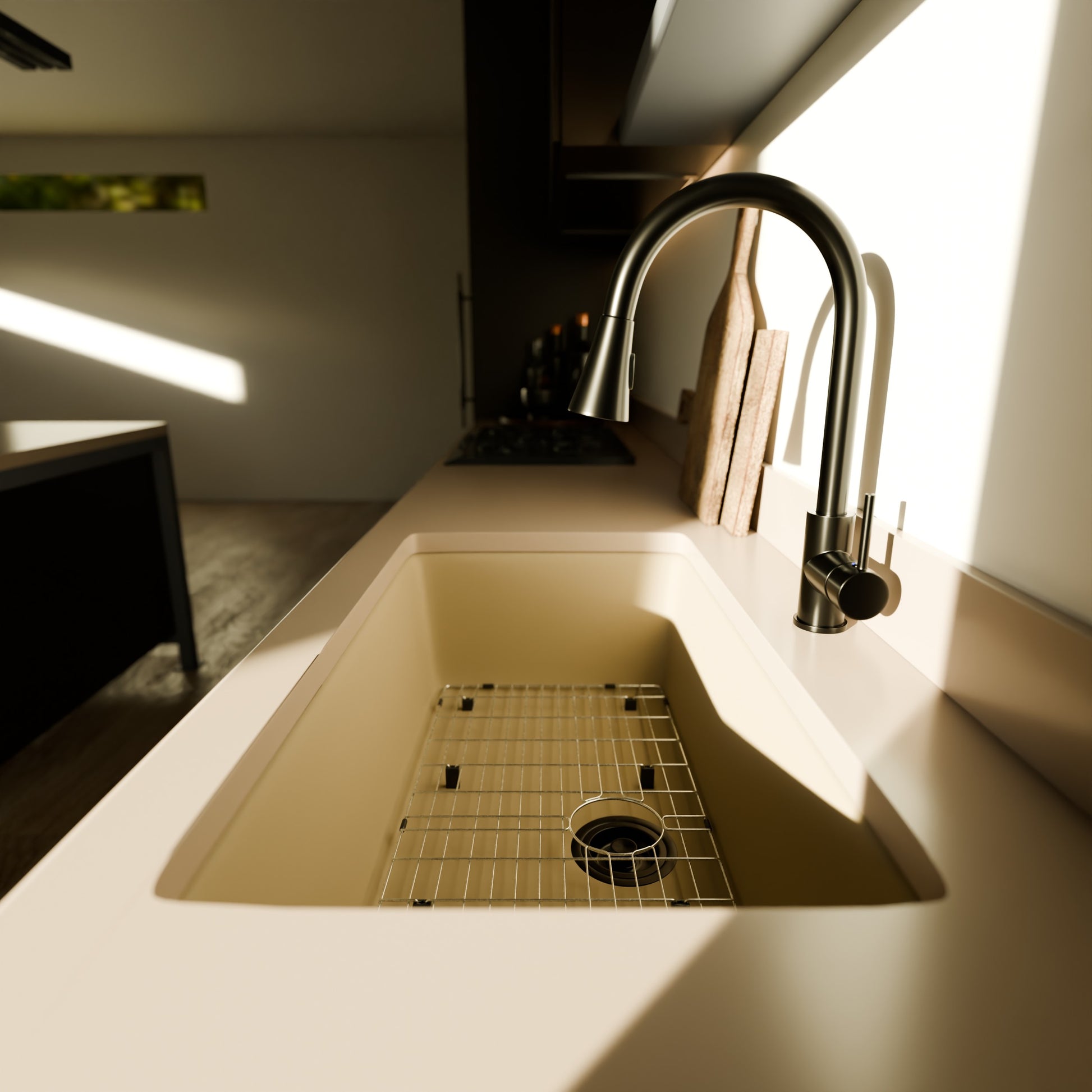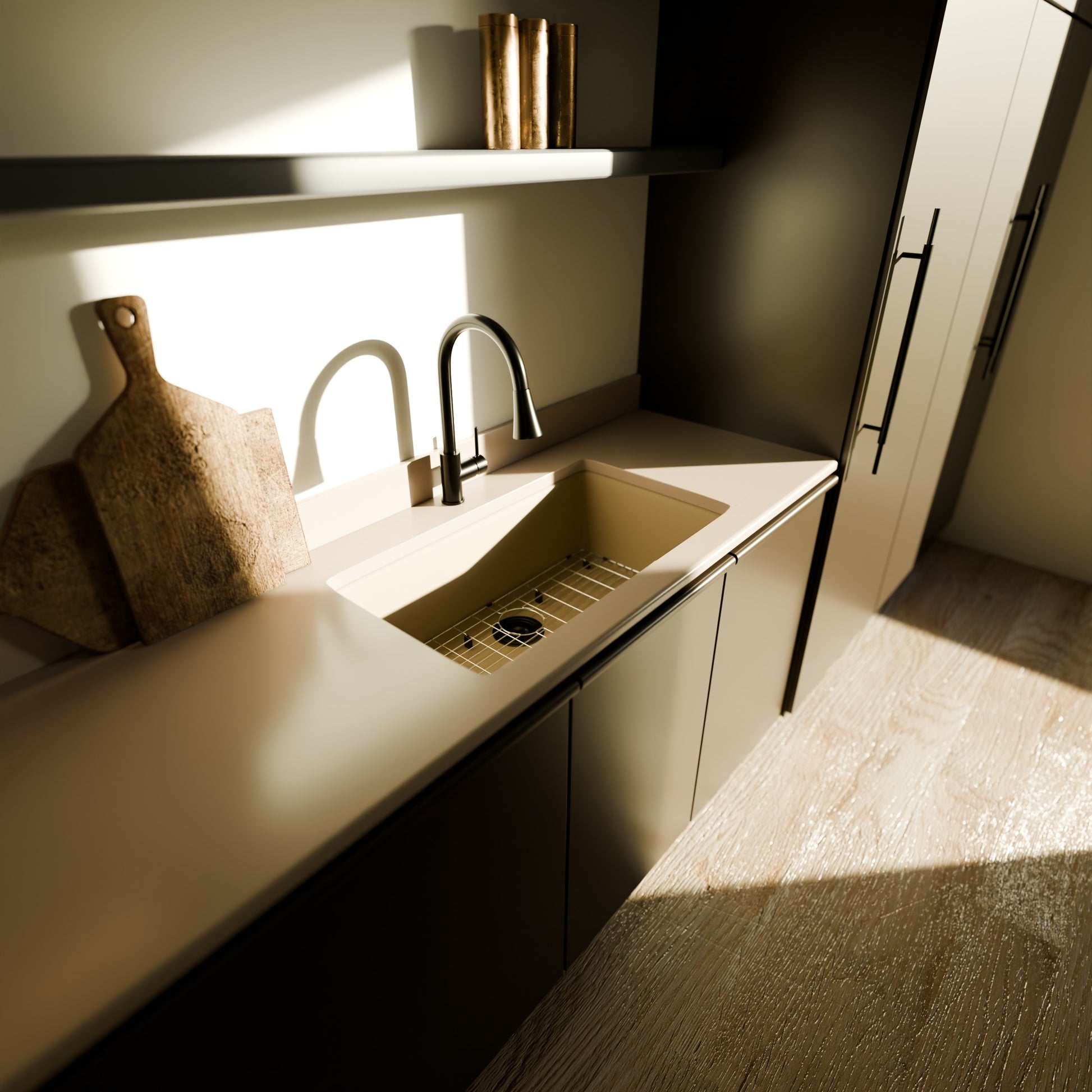- Sand-tinted granite composite kitchen sink