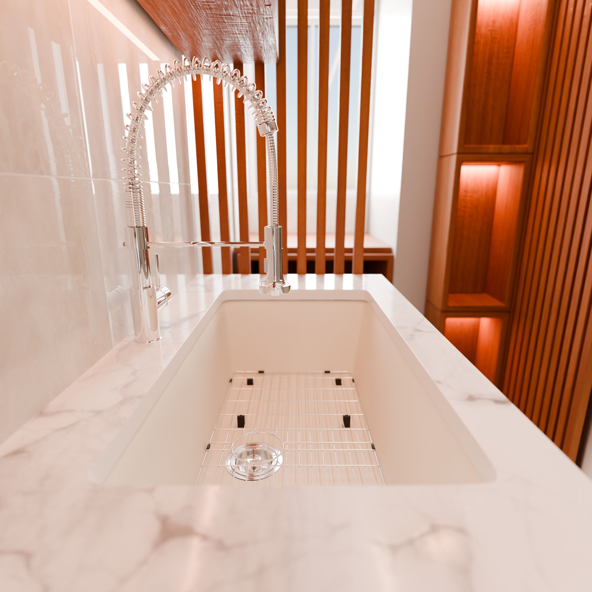 Single Bowl Undermount Granite Composite Sink in Striking White - NKGC-SBUND-WHI