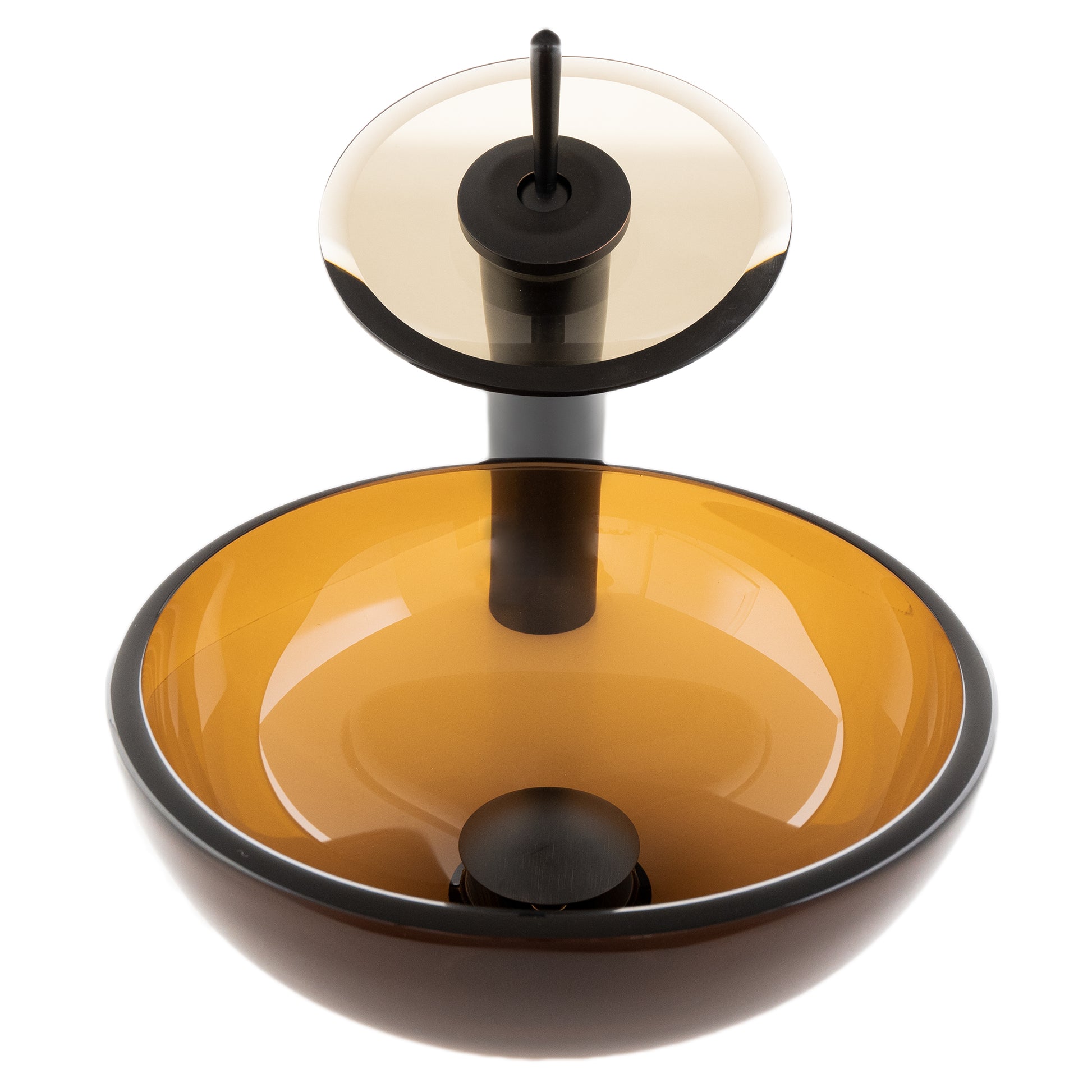 A perfect sink and faucet combo for small powder rooms or bathrooms. This 12-inch tea glass vessel sink works well in small areas. Constructed of thick 1/2 inch clear tea high tempered glass, this mini vessel sink has a look of classic understated elegance.