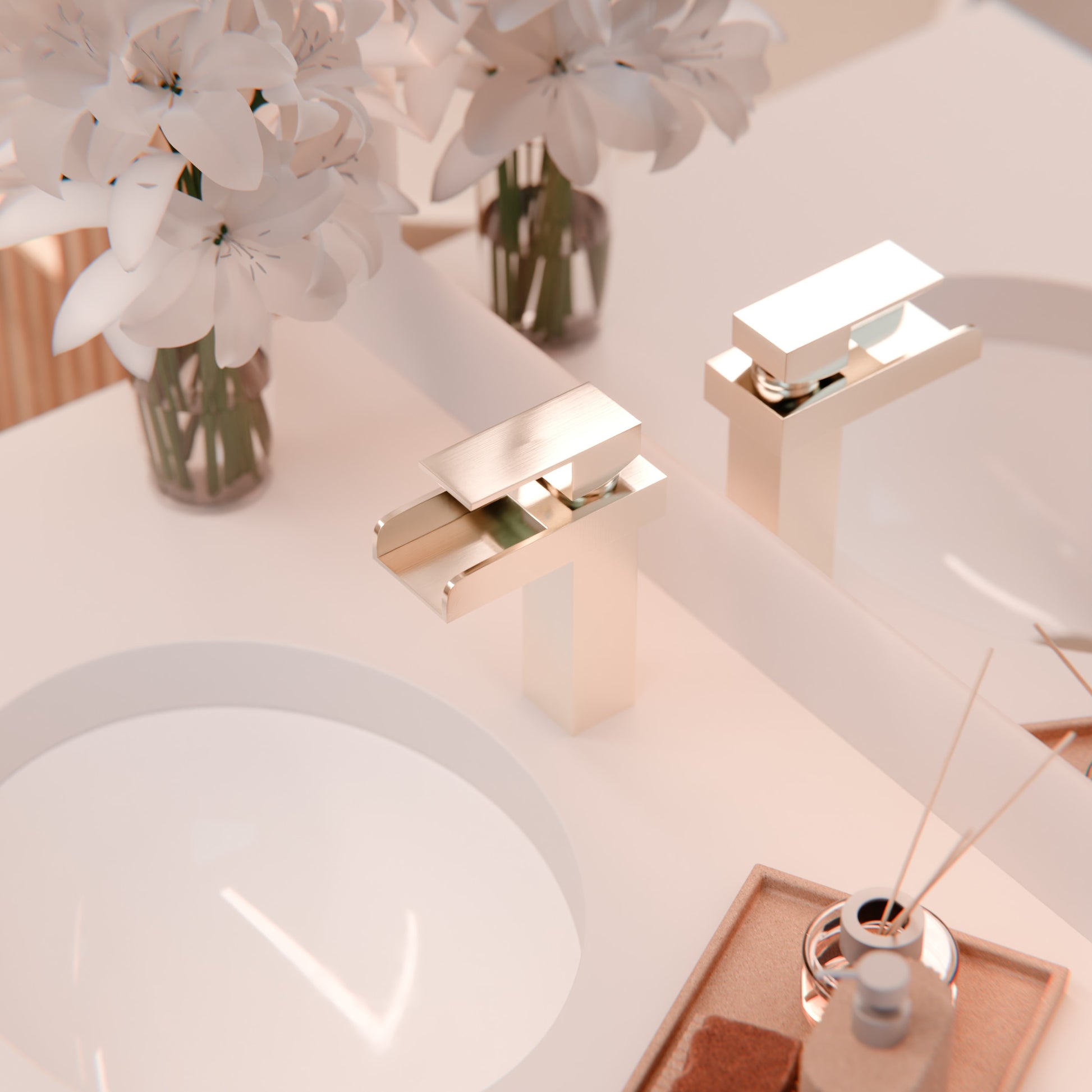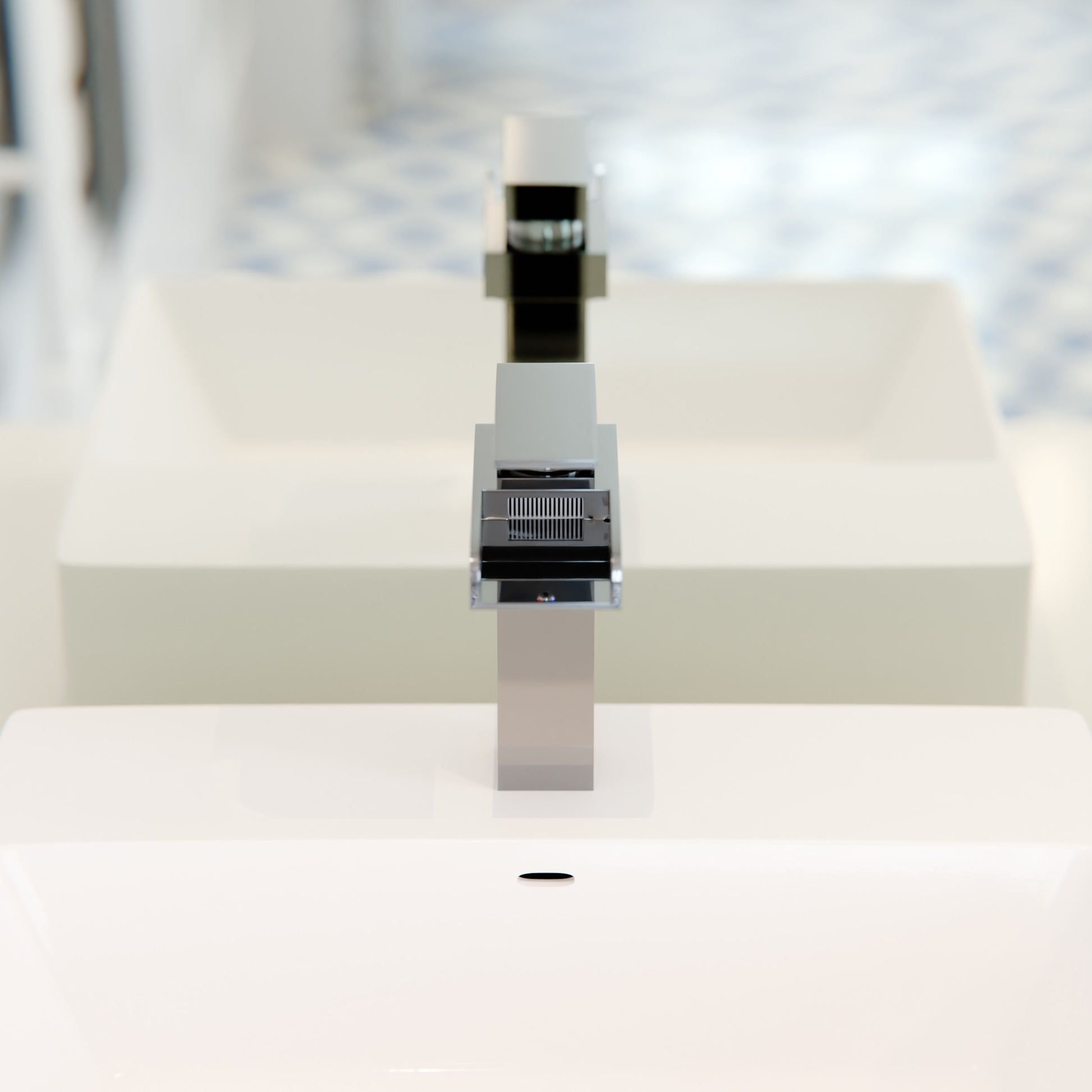 Sleek modern style meets sophisticated function with the Novatto Craven collection. Upgrade your bath with a touch of style and sophistication with this sleek waterfall basin faucet. The water runs through the flat spout creating a wide miniature waterfall. The CRAVEN is specifically designed to accommodate either an under-mount or a drop-in sink and is to be mounted directly on the counter. Our faucet design provides more room under the spout for washing and cleaning hands. A single lever controls the temperature and water pressure.