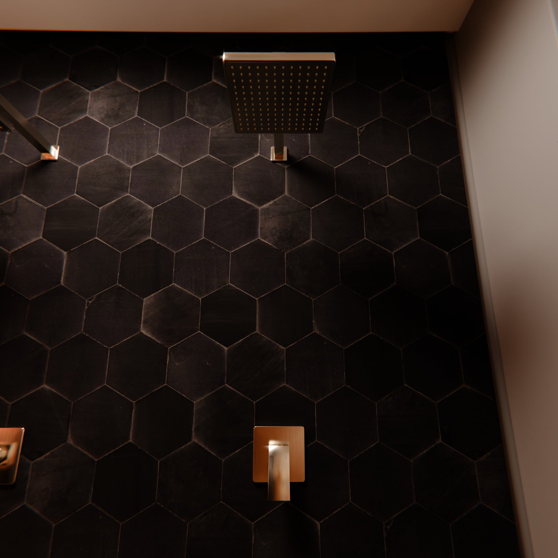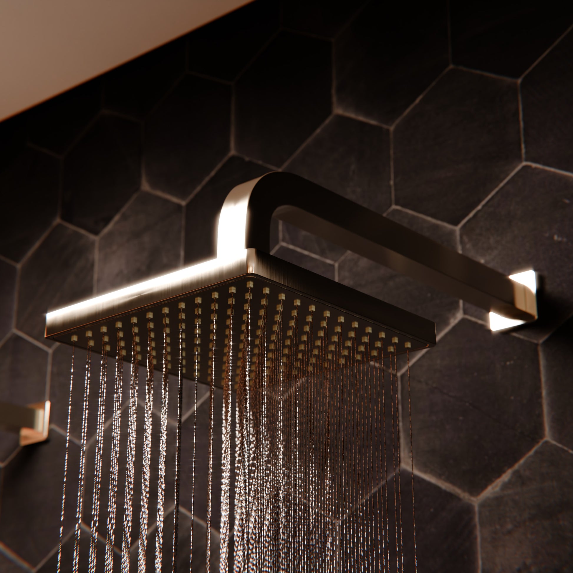 The showerhead, arm, and handle are offered in a variety of finishes from a stunning PVD brushed nickel that resists corrosion to a smooth, elegant matte black or polished chrome.