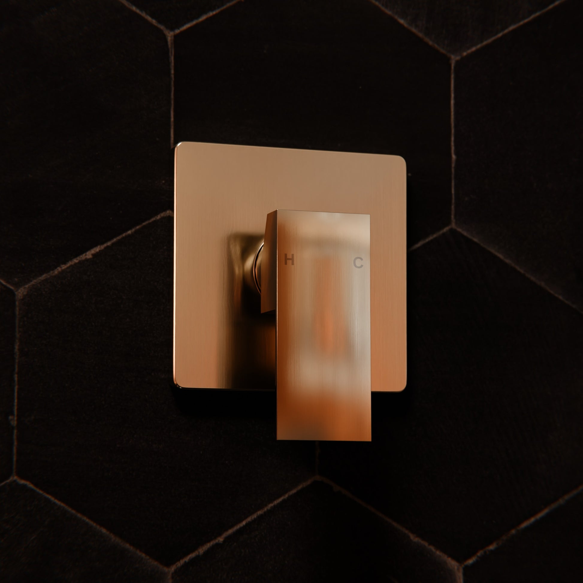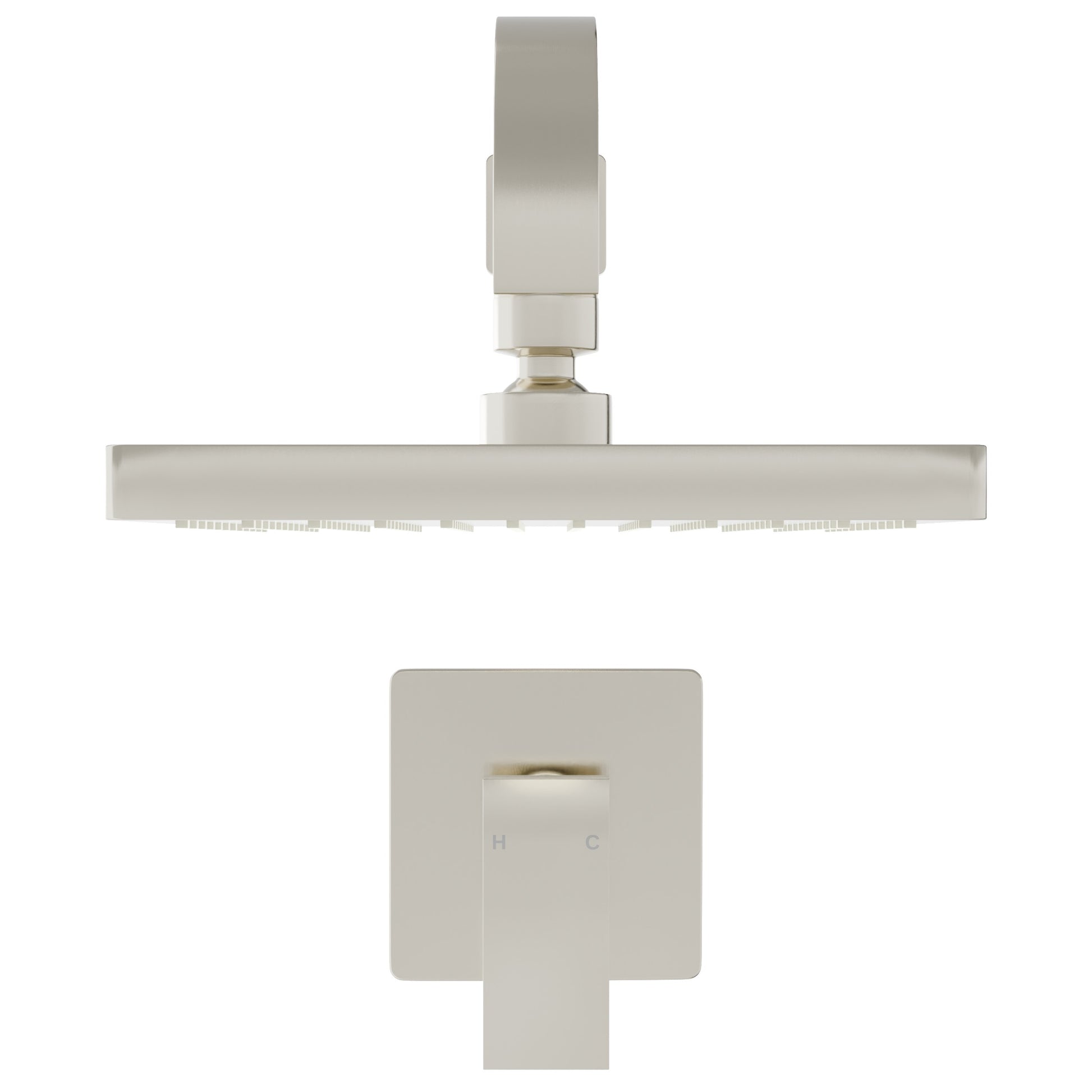 The valve is constructed of solid brass with an internal high-pressure ceramic cartridge, ensuring long-lasting performance and resistance to corrosion. This set comes complete with a shower head, arm, handle, cover plate, and valve.
