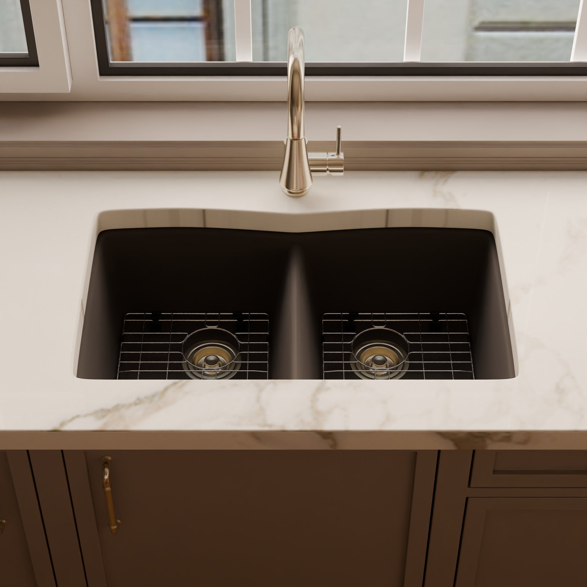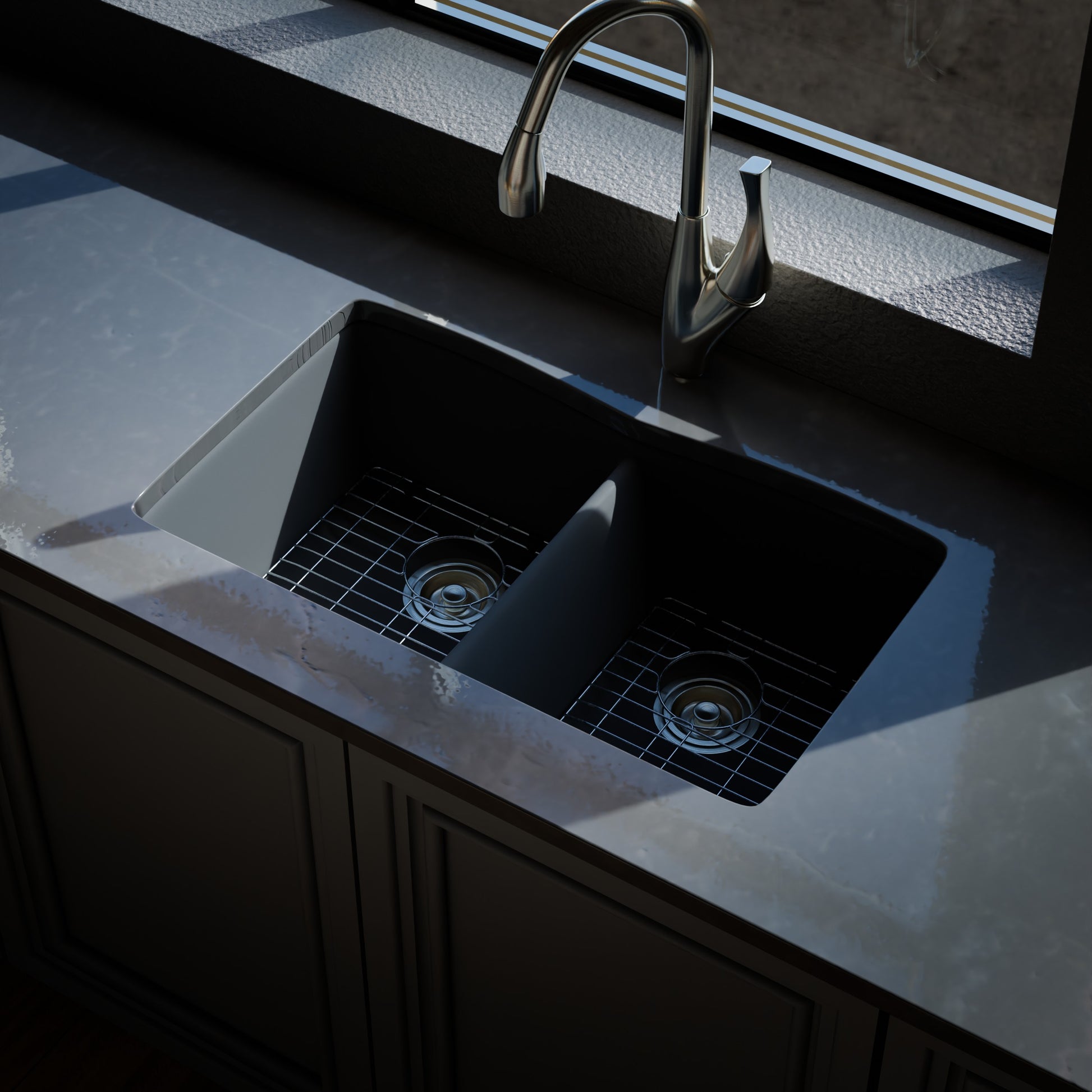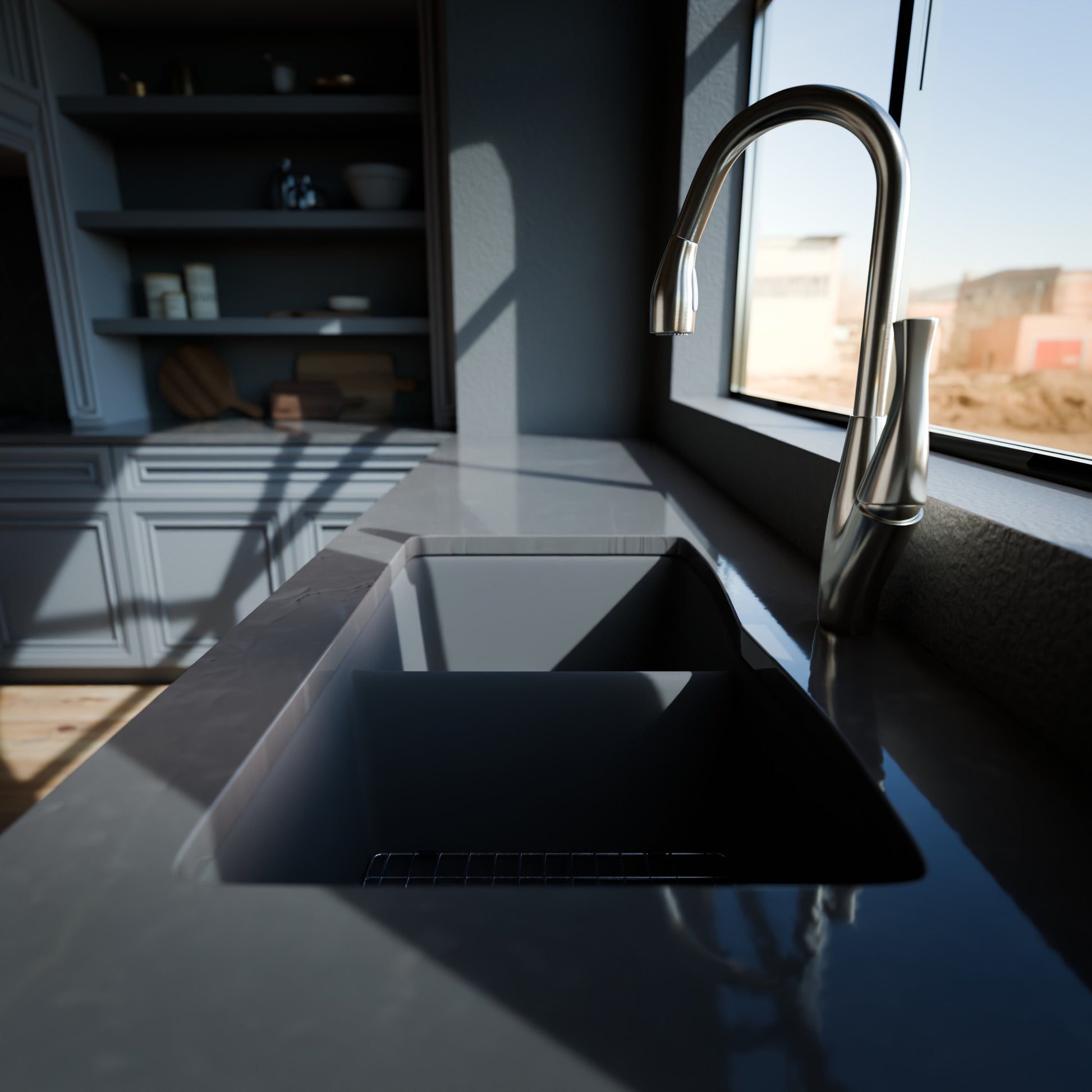 - Striking ash colored granite composite kitchen sink