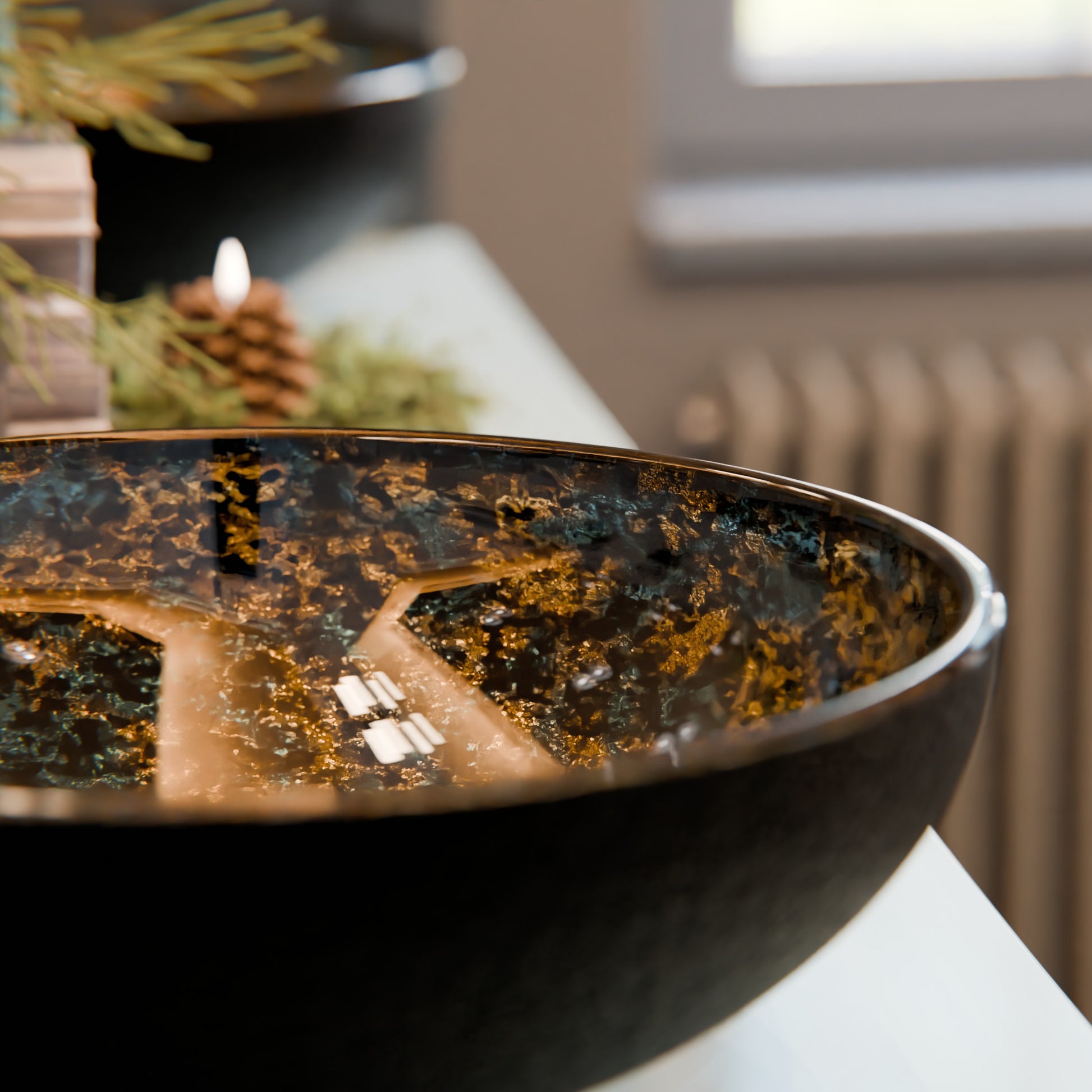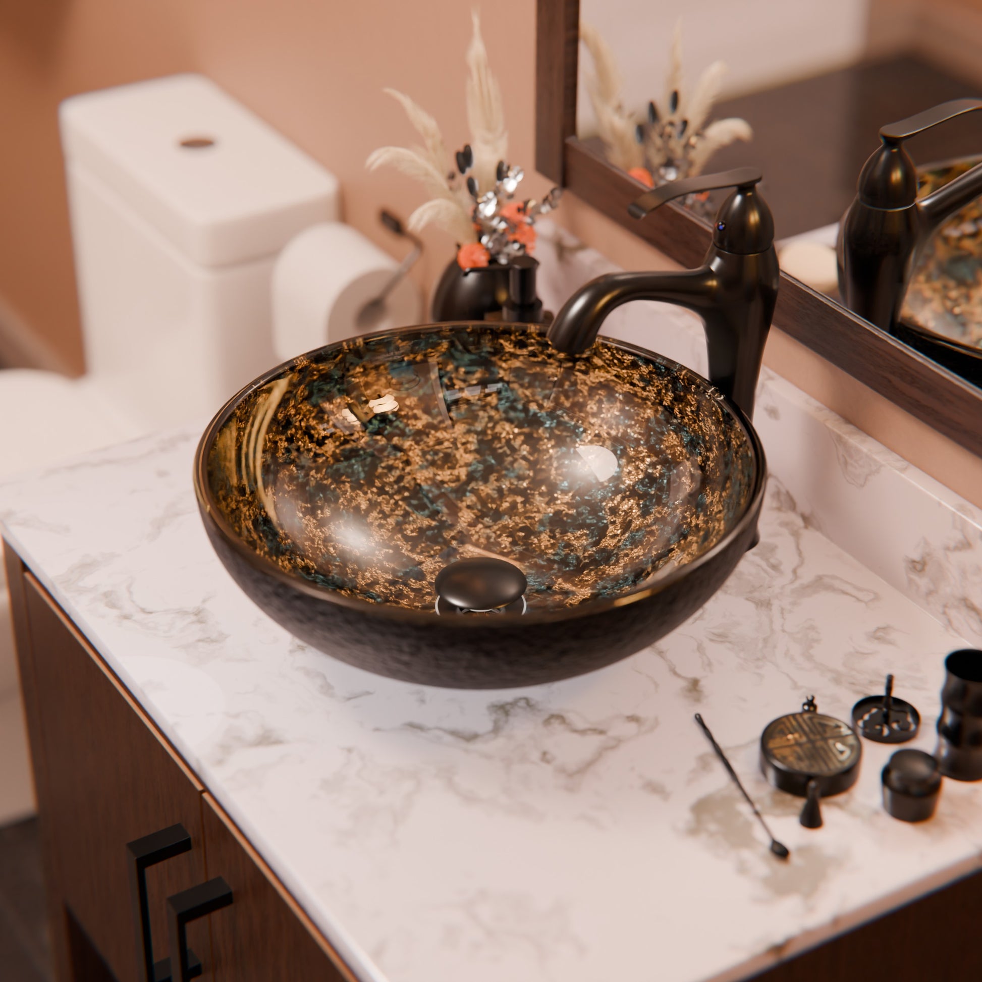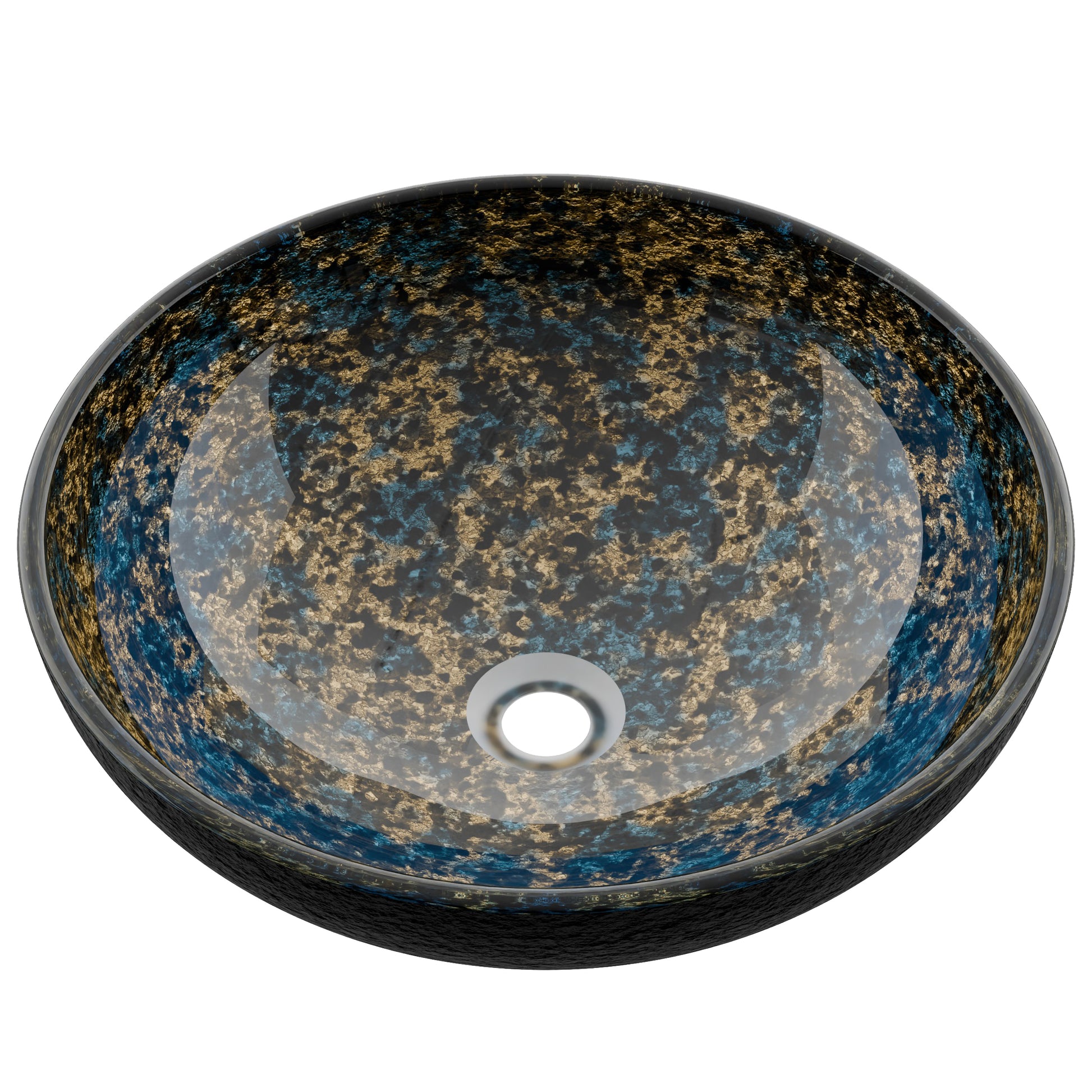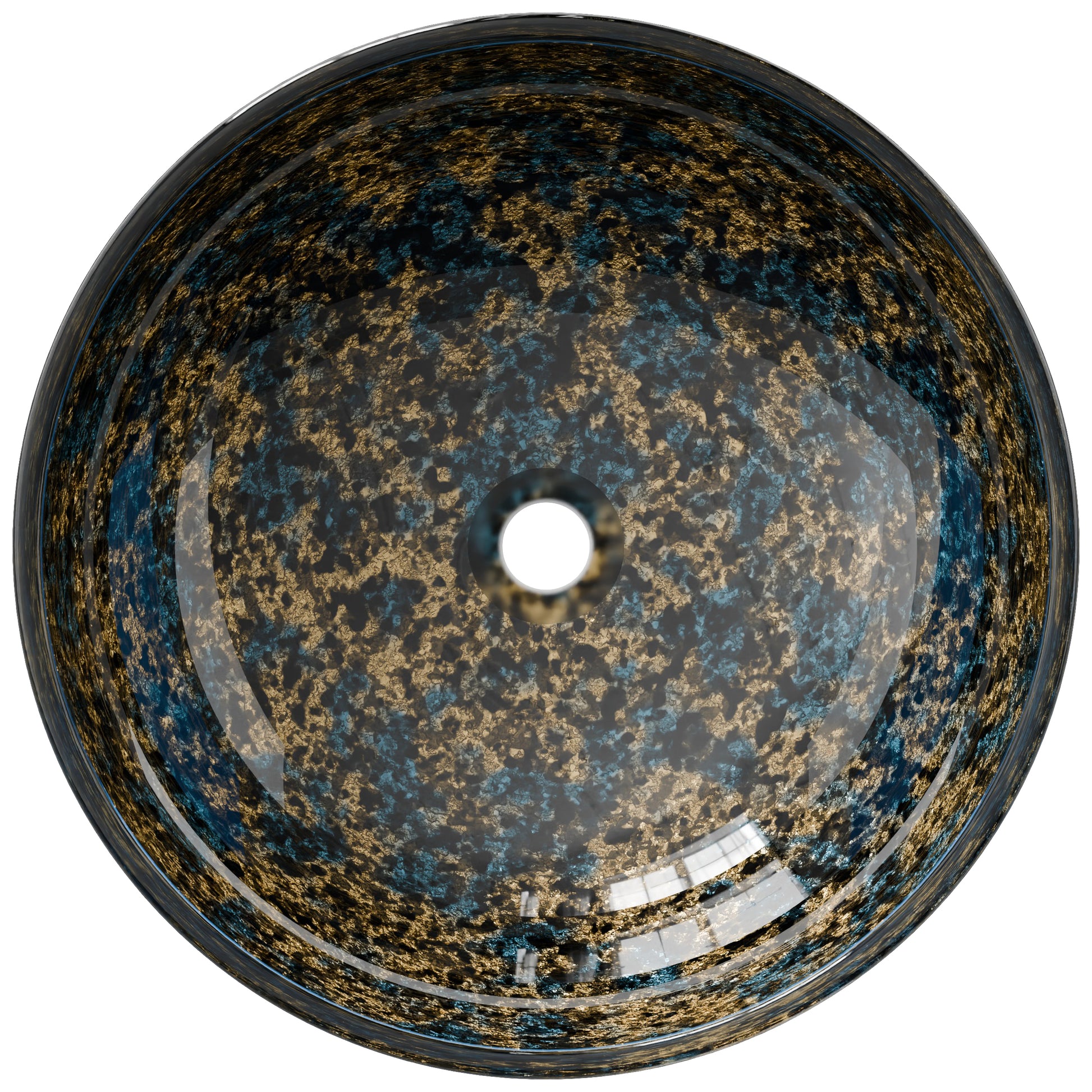 Lepardo, from the exclusive hand-painted vessel collection of Novatto, adds a touch of style to any bath. Novatto's tempered glass vessels will enhance and harmonize the look of any bath by unifying the color and textural design. Constructed of high-tempered glass, this round vessel sink has a unique hand-painted design of dappled blue and beige. Tempered glass cannot be compared to everyday synthetic porcelain and ceramics. Novatto uses advanced technology, including computerized glass processing, to produce glass basins with unmatched structural integrity and longevity.