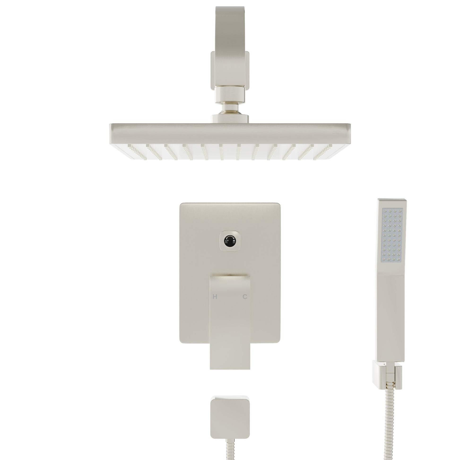 Elevate your shower experience with this versatile dual-function shower and wand set. The eight-inch rainfall shower head delivers a soothing, gentle cascade, while the wand allows for targeted water pressure exactly where you need it. This comprehensive set includes the shower arm, head, rough-in valve, and wand, available in elegant finishes such as matte black, chrome, or brushed nickel.