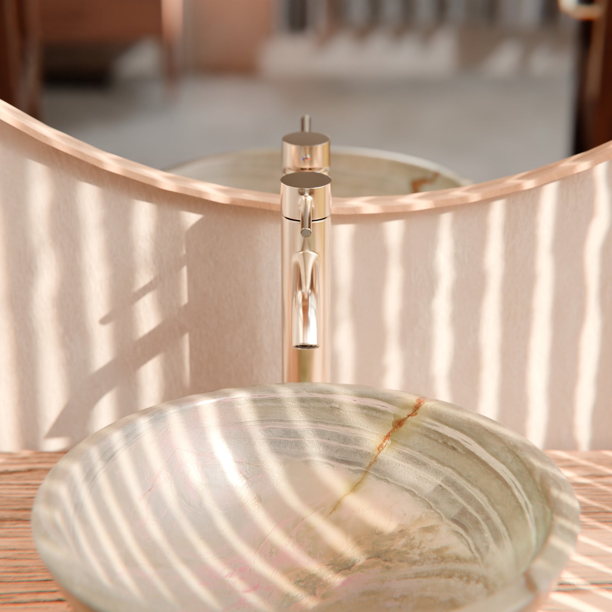 A sleek style meets sophisticated function with the Novatto Myers collection. Each faucet is constructed using only the best available components including solid brass construction and high-pressure ceramic cartridges. Specifically designed to accommodate a vessel sink, this single-hole faucet is to be mounted directly on the counter. The taller faucet provides more room under the spout for washing and cleaning hands. A single lever controls the temperature and water pressure.