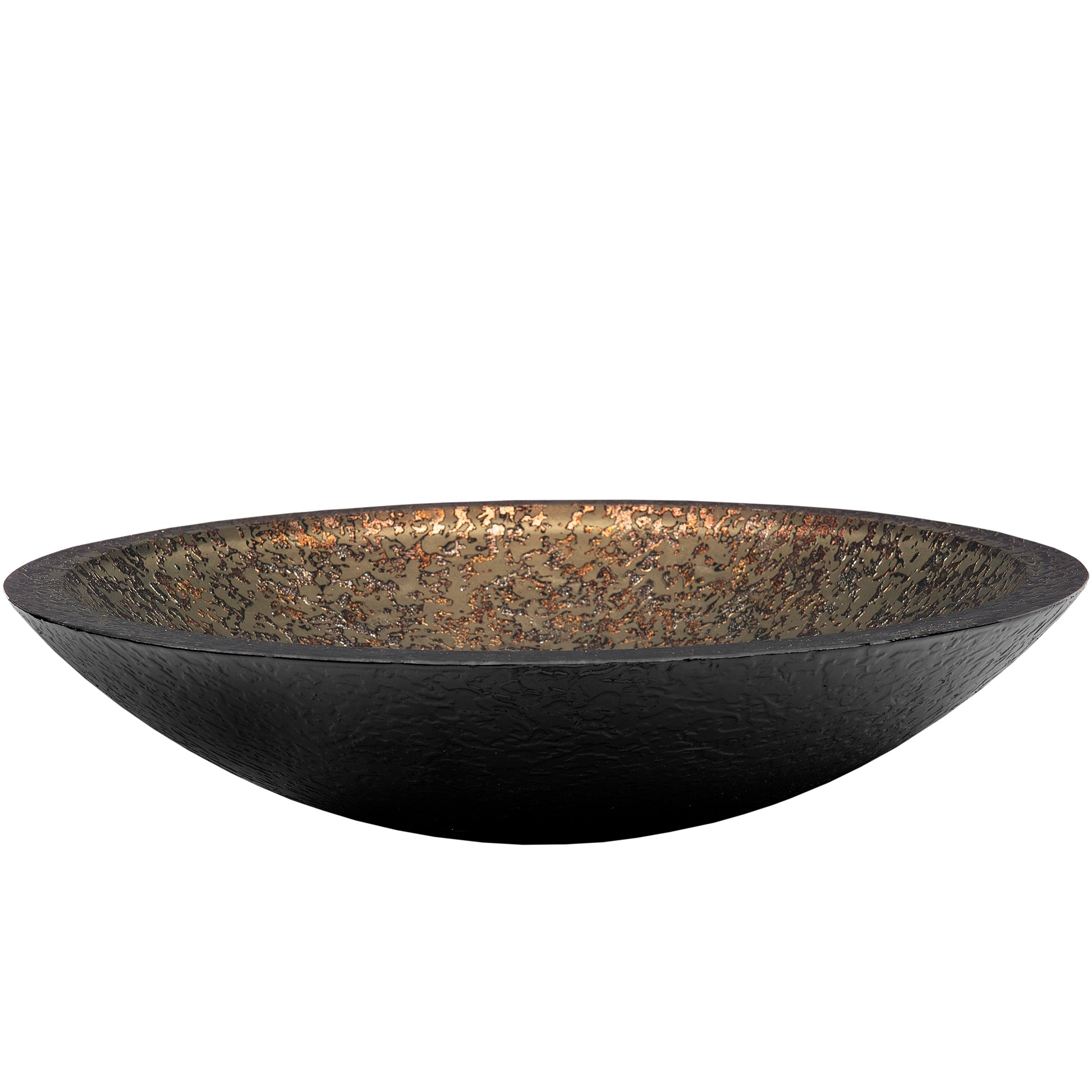 Laghetto, from the exclusive hand-painted vessel collection of Novatto, adds a touch of style to any bath. Novatto's tempered glass vessels will enhance and harmonize the look of any bath by unifying the color and textural design. Constructed of high-tempered, thick 1-inch glass, this round vessel sink has a unique hand-painted design of marbled khaki green and dappled golds. Tempered glass cannot be compared to everyday synthetic porcelain and ceramics. Novatto uses advanced technology, including computerized glass processing, to produce glass basins with unmatched structural integrity and longevity.
