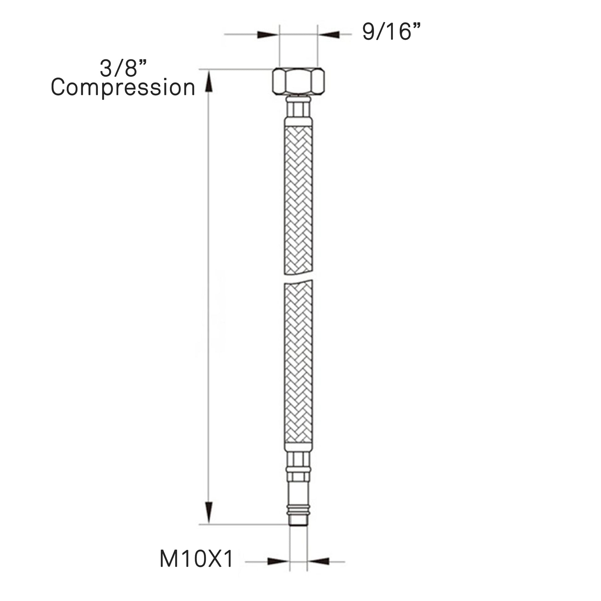 This braided, stainless steel, bathroom faucet supply line is durable, reliable, and uses solid brass connectors, thus ensuring quality and longevity. The hose is a standard, US supply water line and is designed to specifically fit all of Novatto's bathroom faucets.
