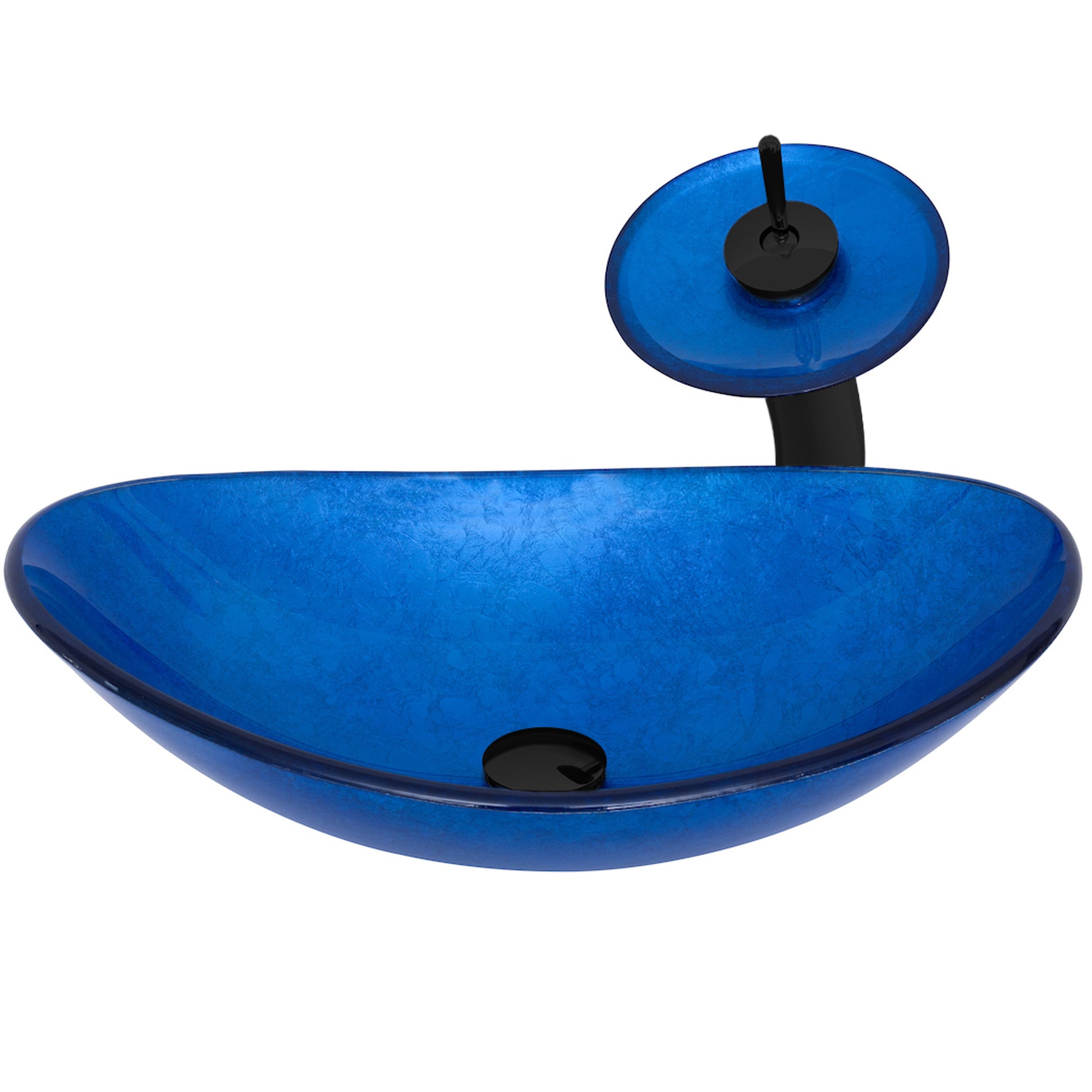 Refresh and harmonize your bath with Novatto's finest and most stunning blue glass vessel, the Azzurro, with a matching waterfall faucet, drain, and mounting ring. When a bath demands superior design and quality, Novatto's glass vessels add that touch. Each glass sink and faucet features its own beauty of color, structural character, and texture, adding a sense of purity, elegance, and a distinctive look to any design.