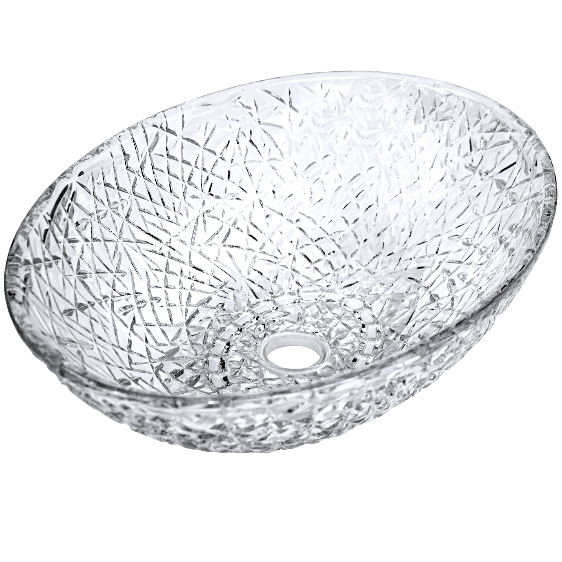 Ostrica Diamond Crystal Clear Glass Vessel Oval Bathroom Sink NCG-2412