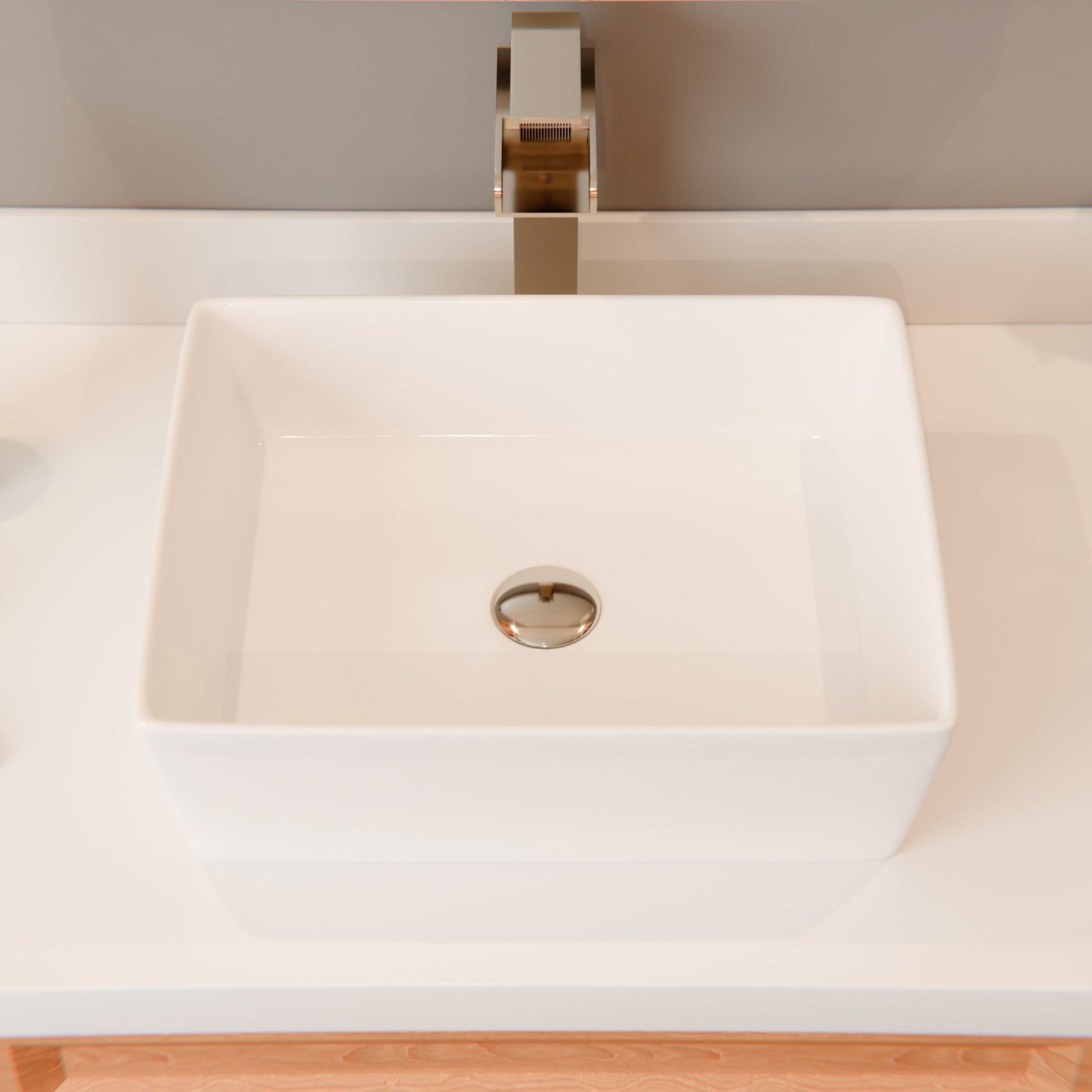 - Rectangle bright white glossy ceramic vessel sink with no overflow