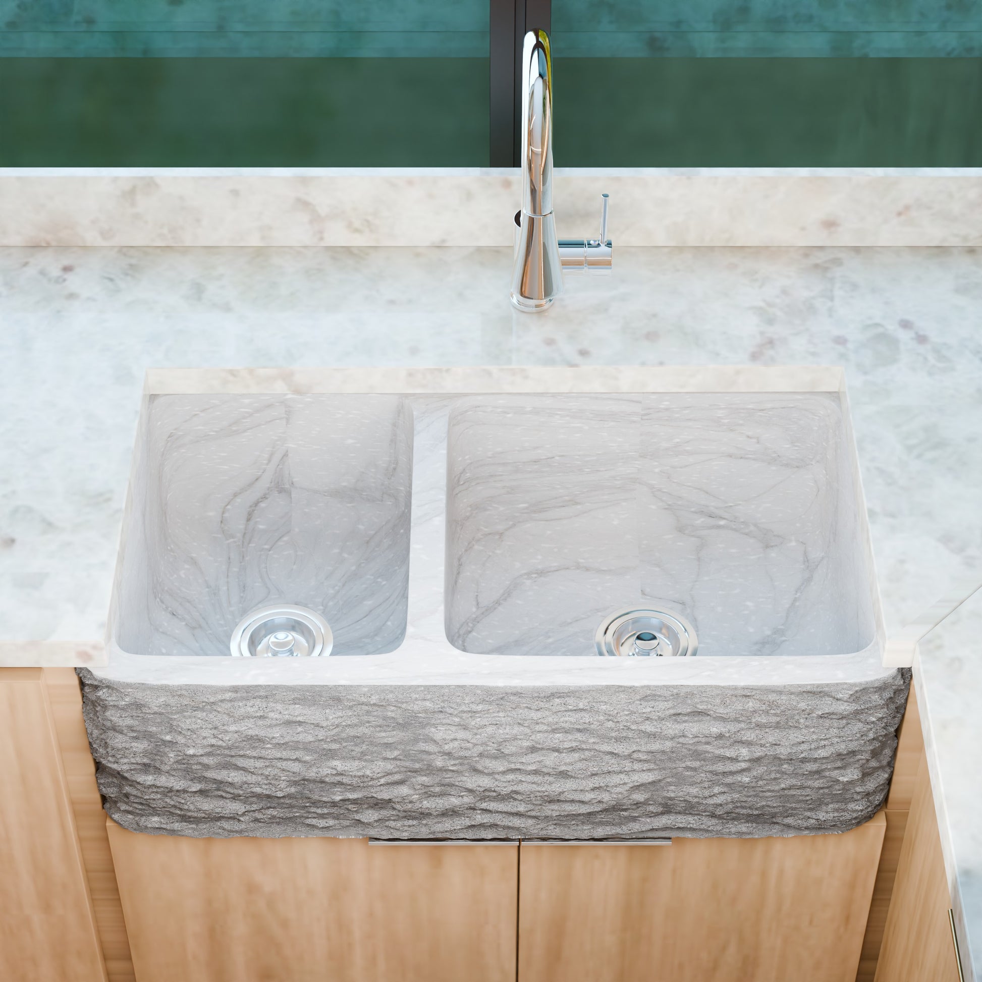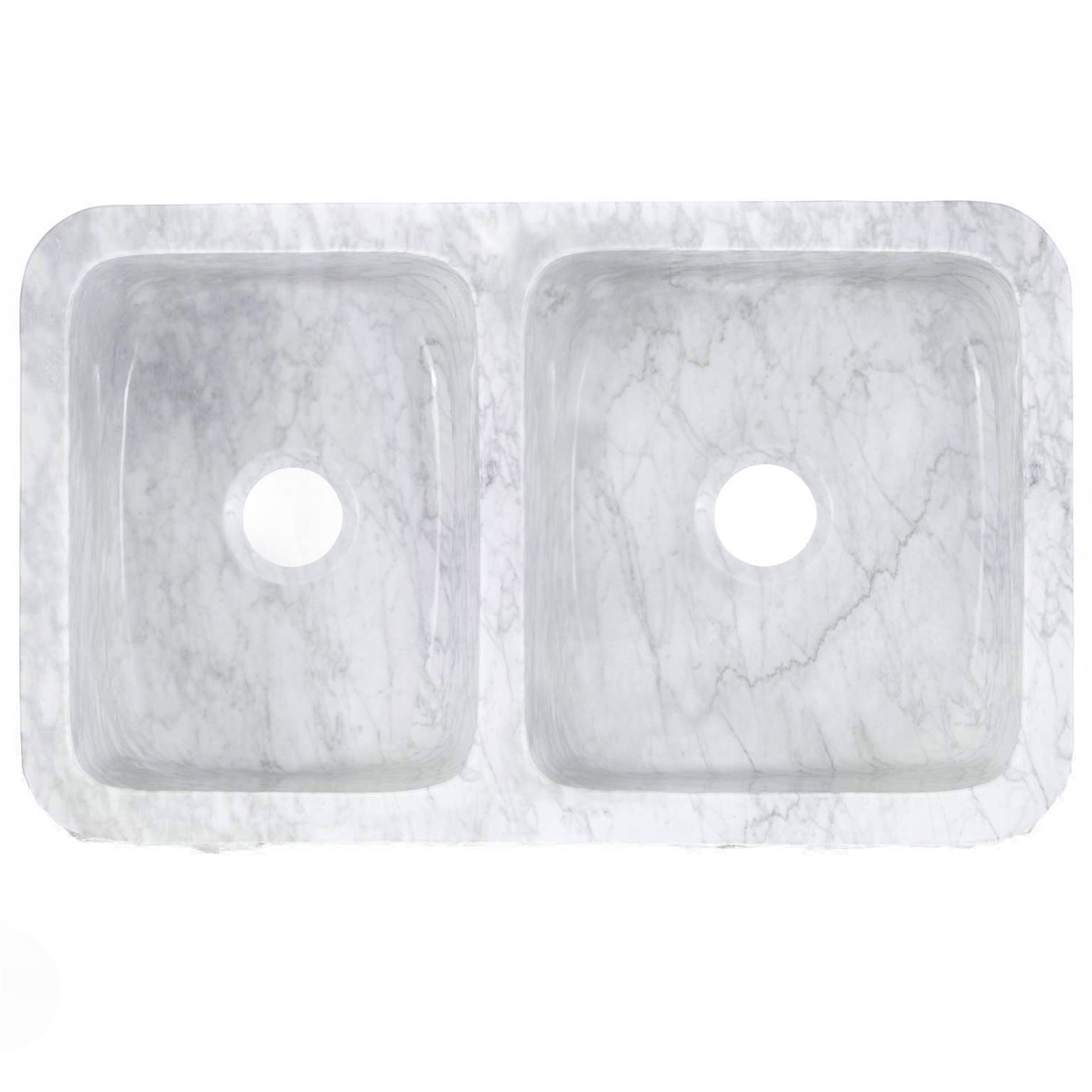 - Rectangle, 60/40, double Carrara white marble kitchen sink