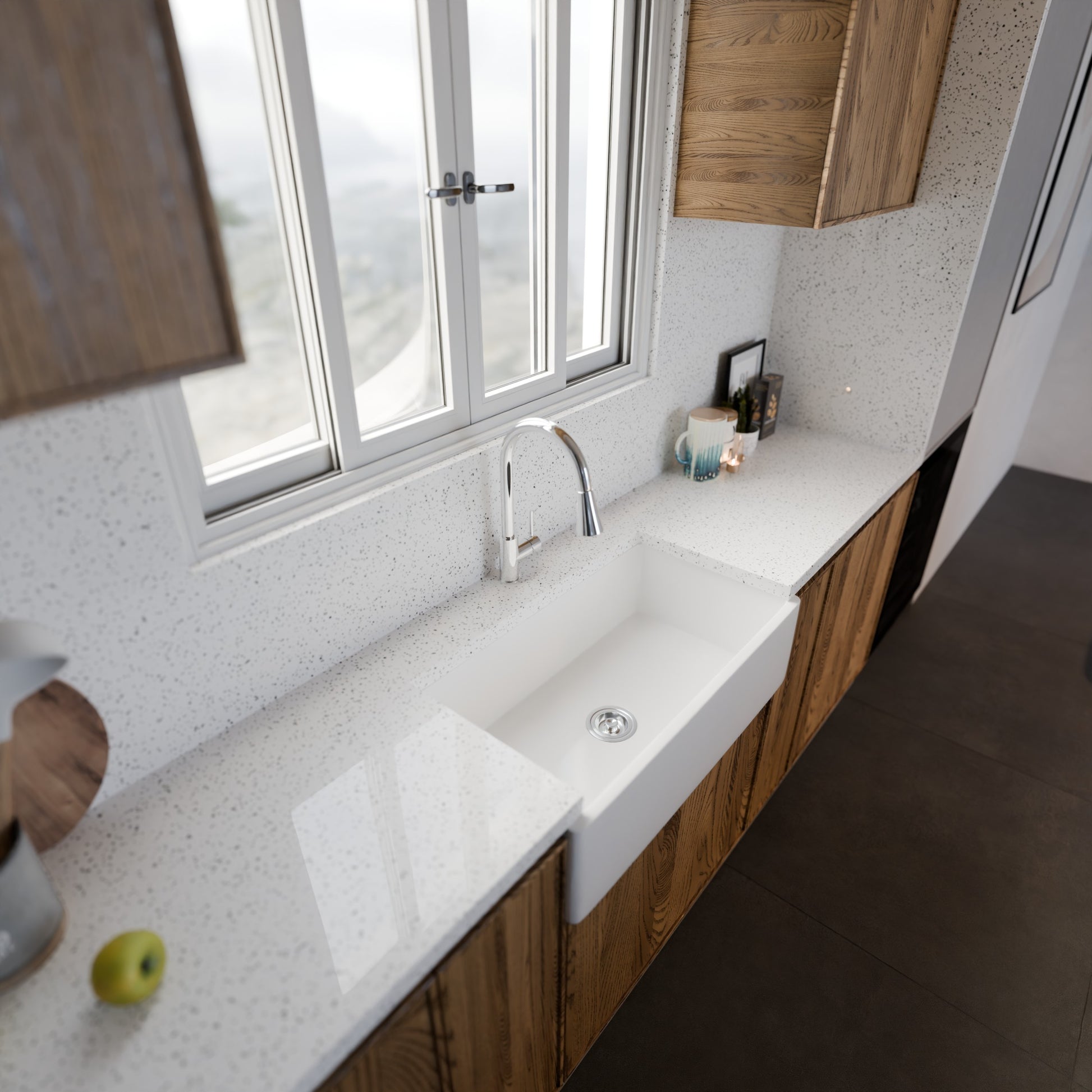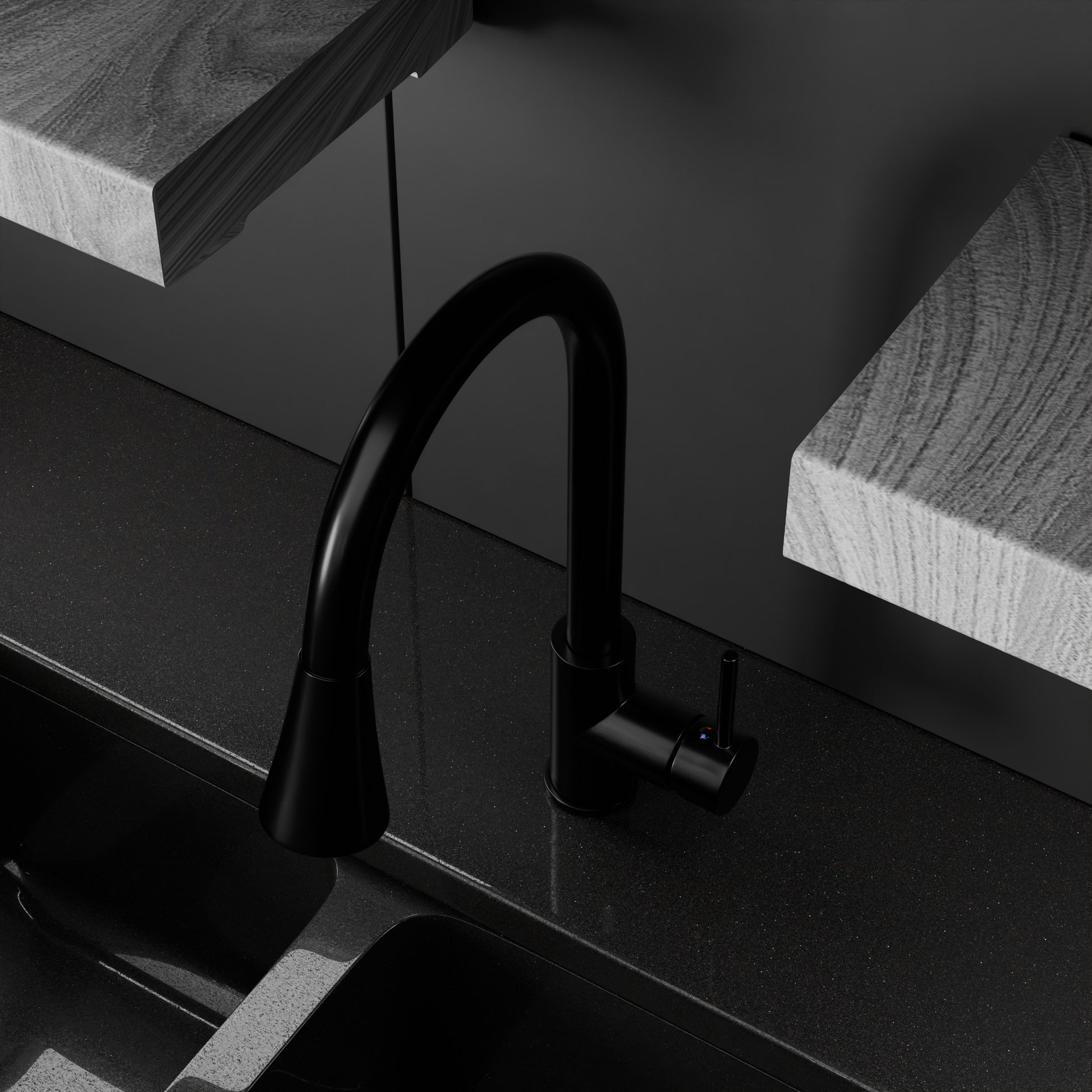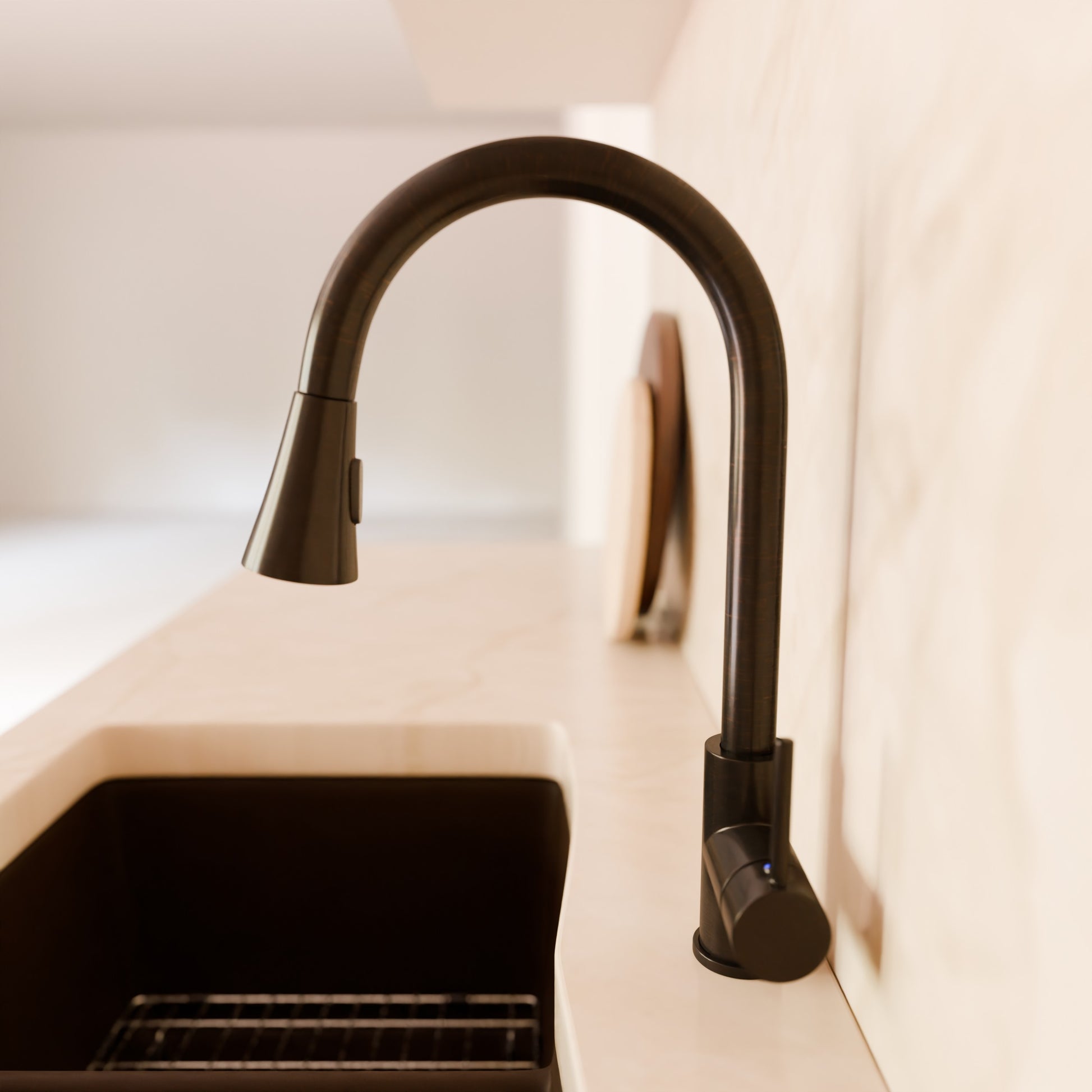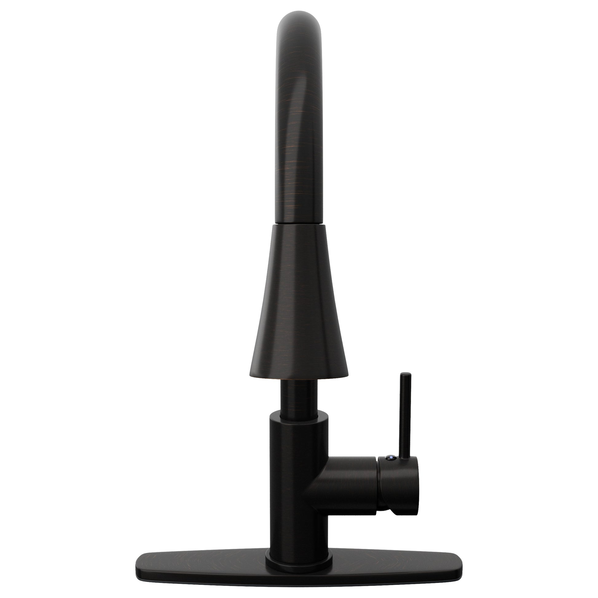 Upgrade the kitchen with style and sophistication with one of our best-selling kitchen faucets. Enjoy the flexibility of a 360-degree high arc pull-down head with an adjustable spray or aerated flow spout. A single lever controls the temperature and water pressure. Durable and easy to clean, the faucet is constructed of solid brass with a lifelong finish available in brushed nickel, chrome, oil-rubbed bronze, or matte black. A high-pressure ceramic cartridge ensures longevity and trouble-free use. A deck plate, supply lines, mounting hardware, and instructions are included for quick and easy installation.