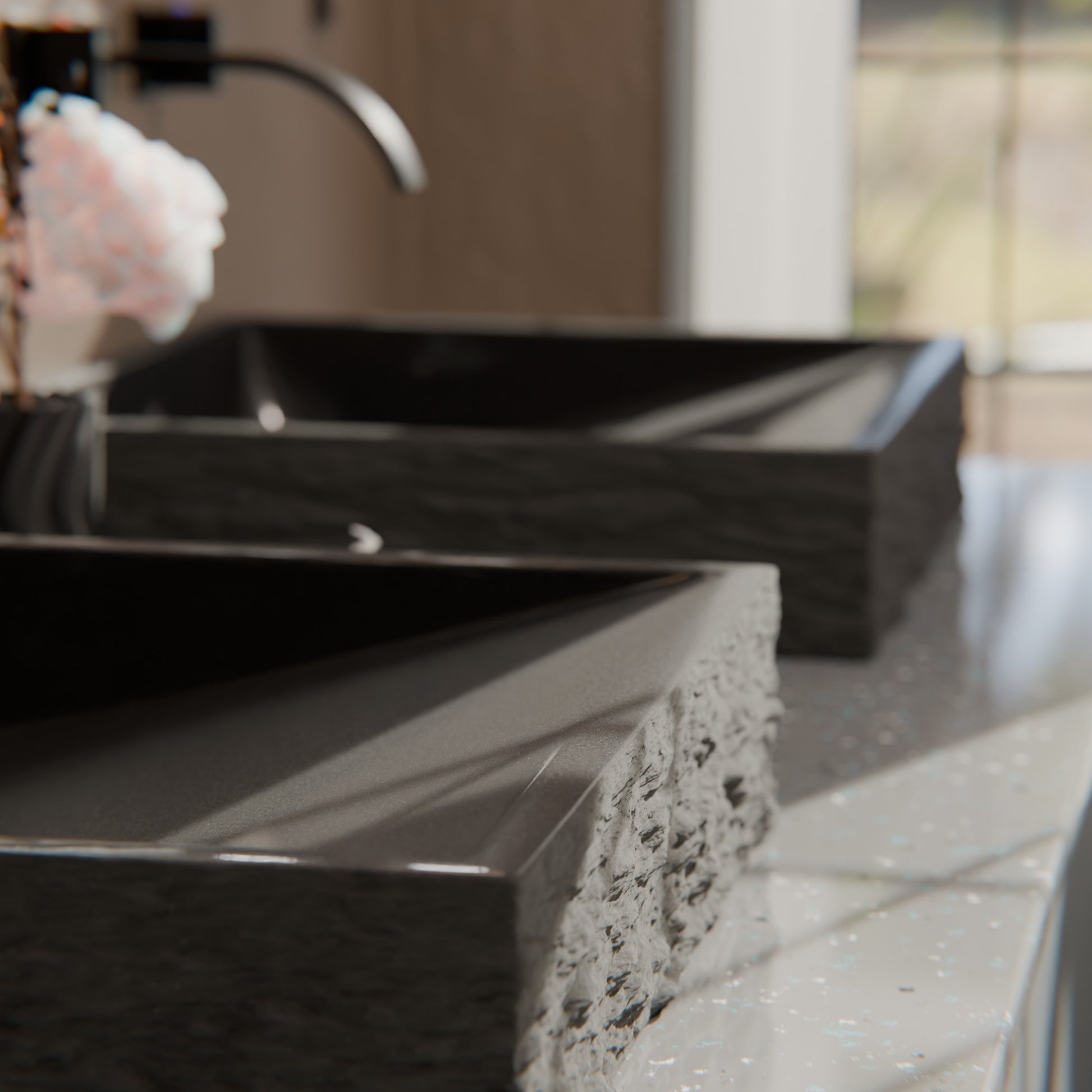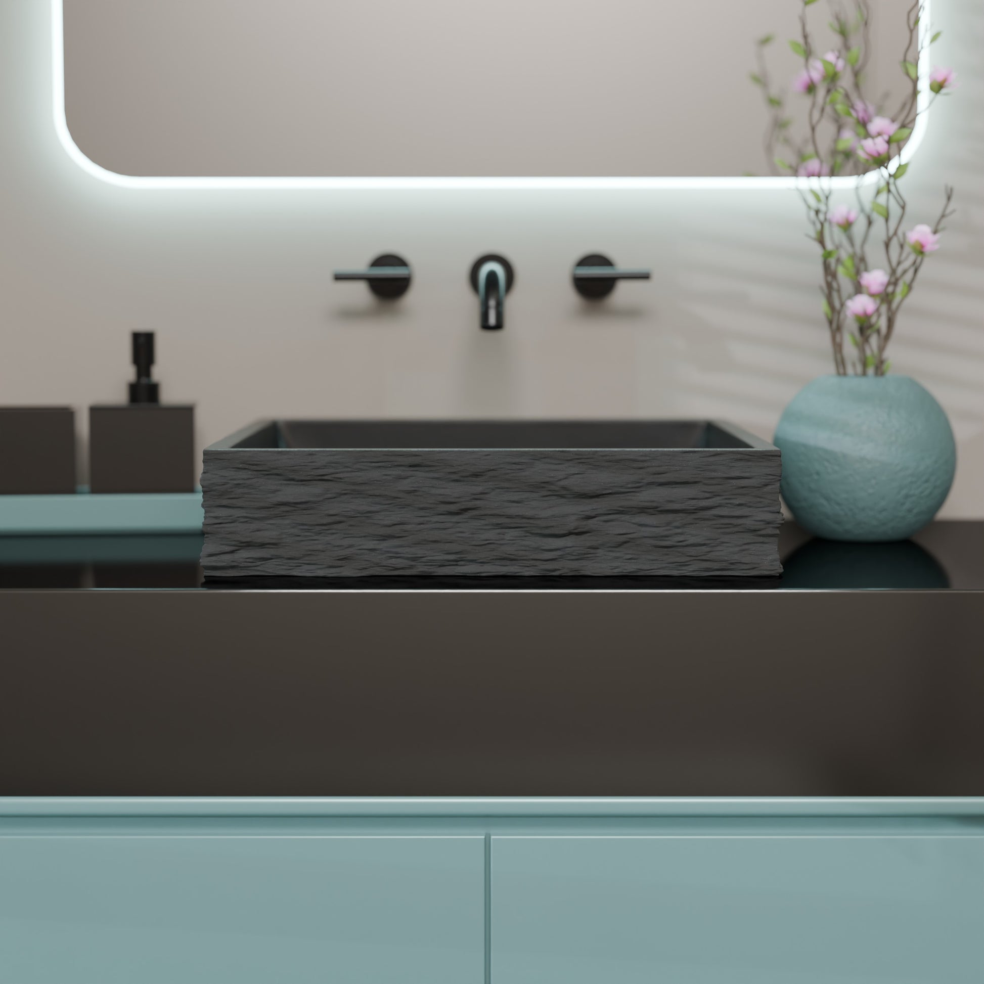 Natural Black Granite Square Vessel Sink with Chiseled Exterior NOSV-ANSQ