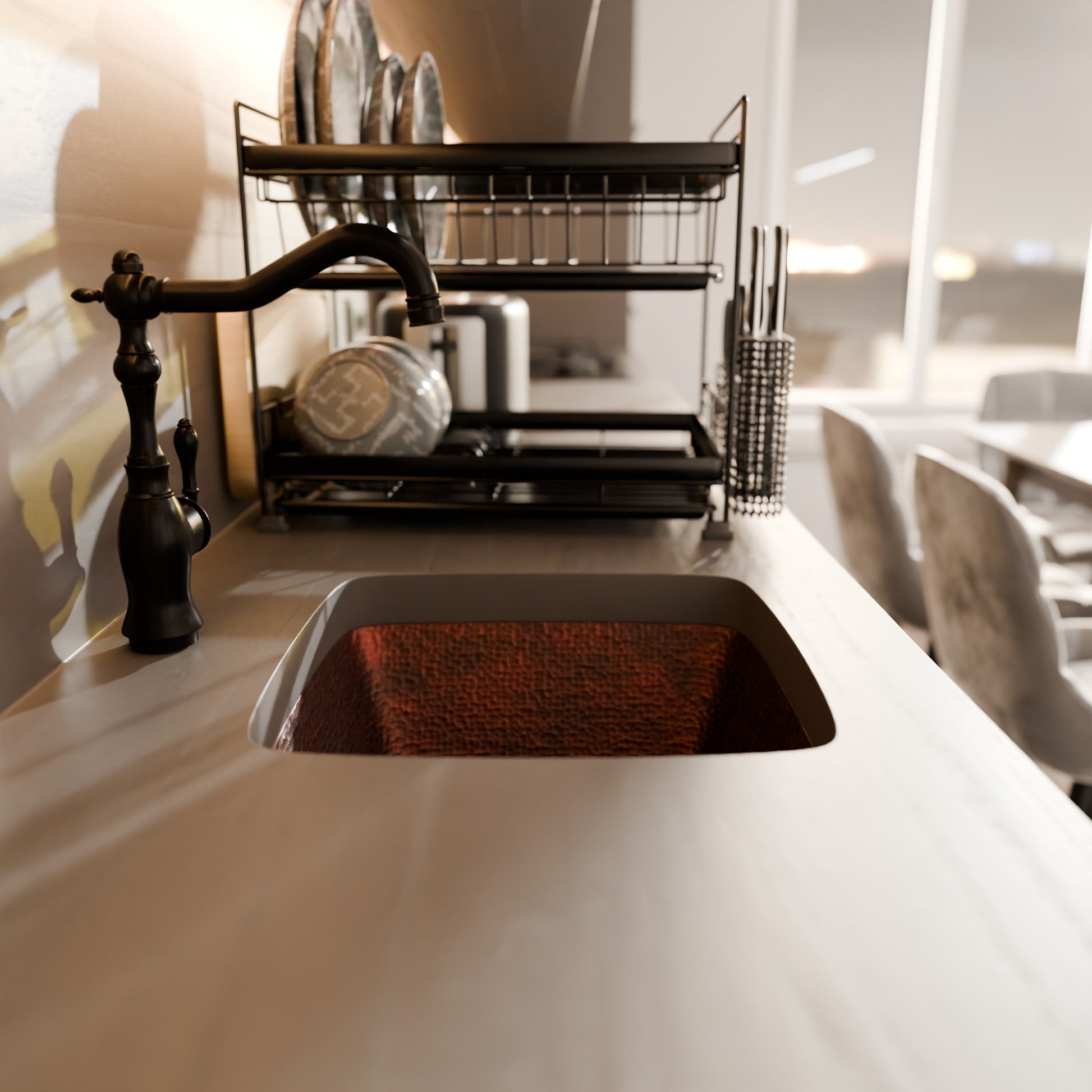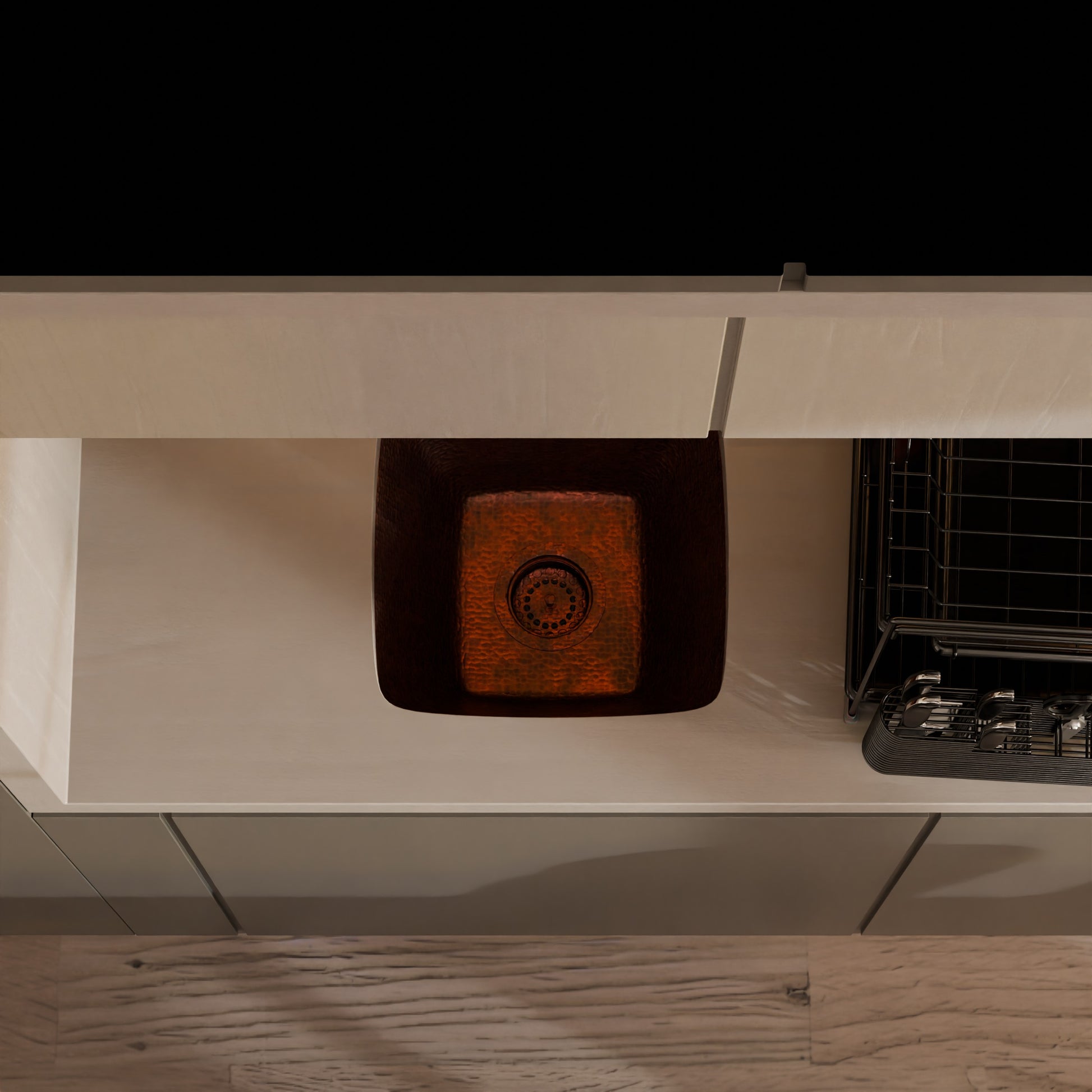 Square Hammered Copper Bar Sink, TCB-003AN