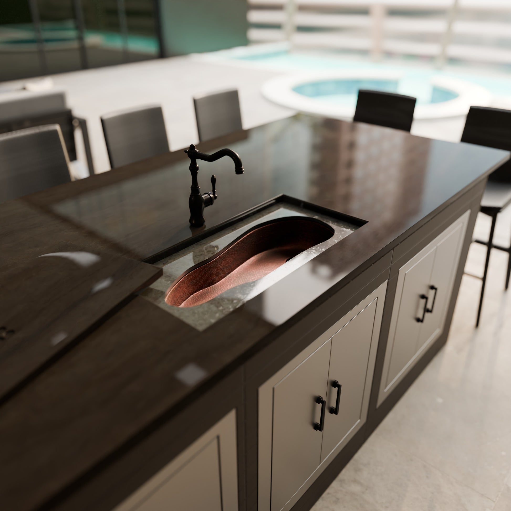 Cayenne River Hand-Hammered Copper Bar Sink, TCB-009AN