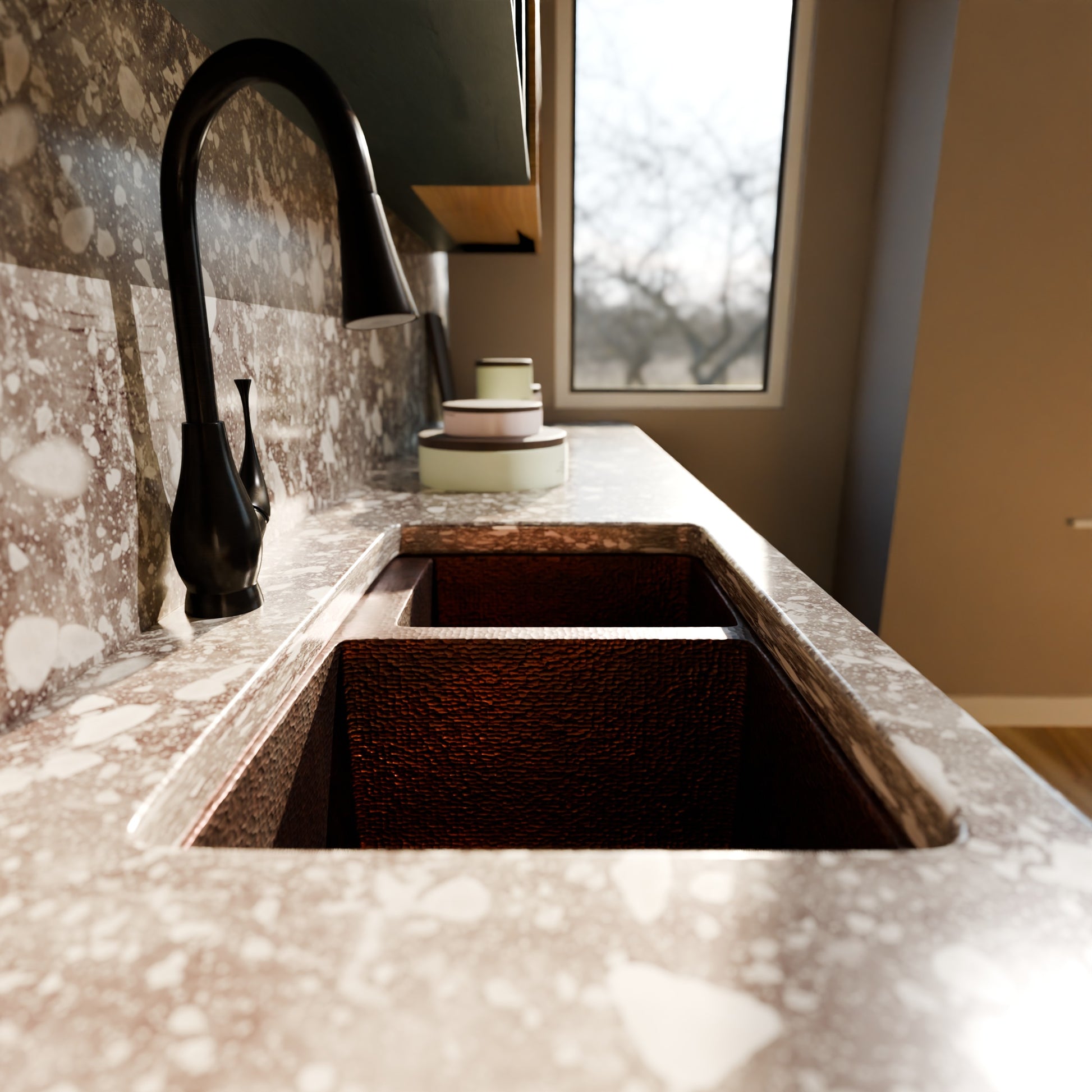60/40 Split Undermount Copper Kitchen Sink, TCK-006AN