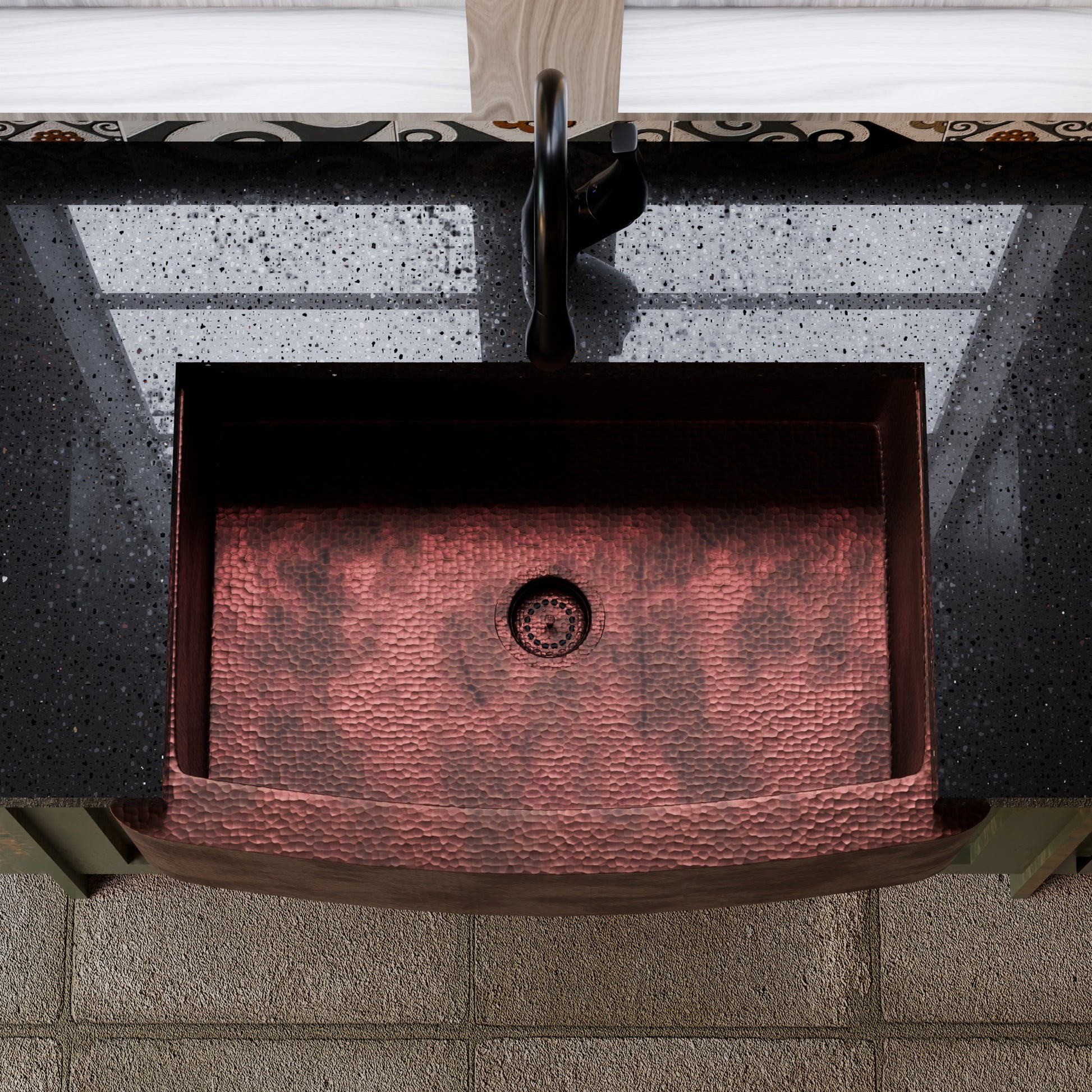 Due to the handcrafted nature of this product, it will vary in appearance, finish, texture, hammering, and other details. Dimensions may vary up to 1/2. We strongly recommend receiving the actual piece before making any installation cuts.