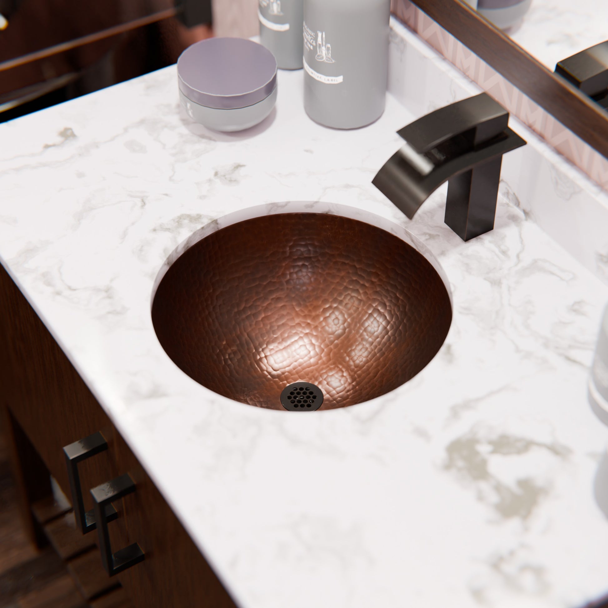Round Copper Undermount Bath Sink in Antique TCU-001AN