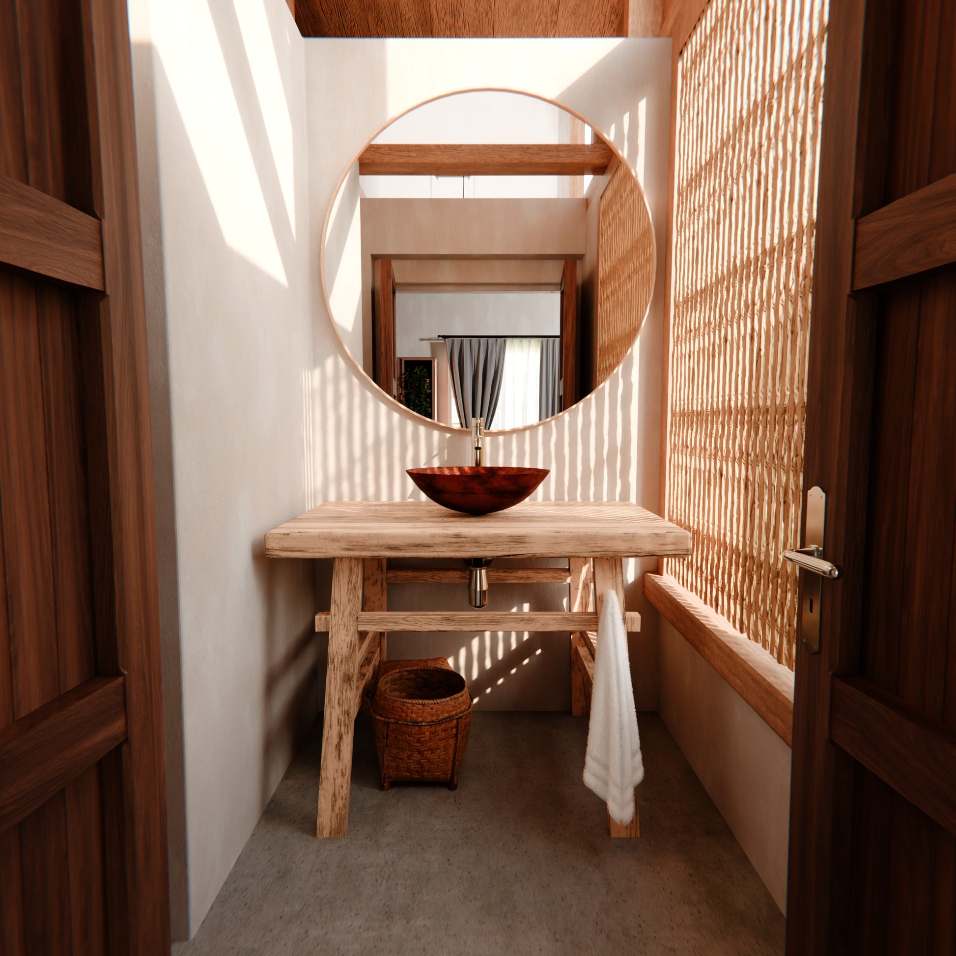 - Hand-hammered natural finish