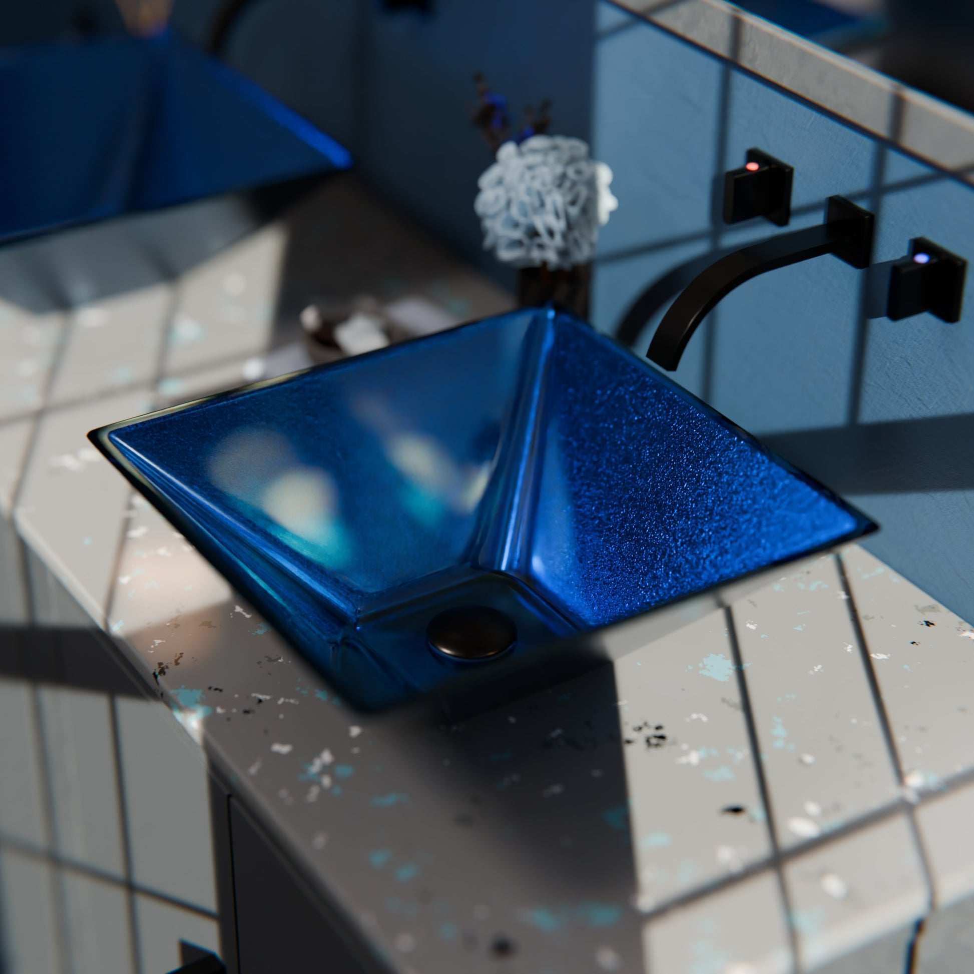 Blue Foiled Square Tempered Glass Vessel Bath Sink TIG-S132-287