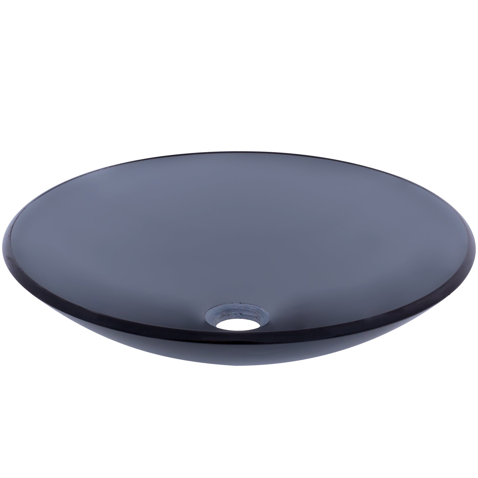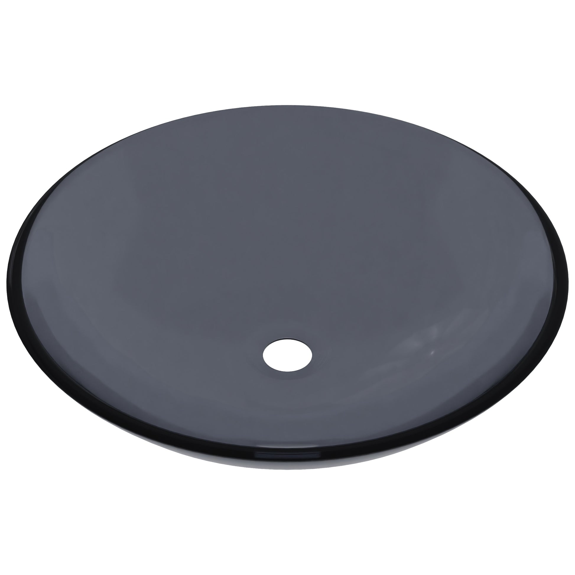 Clear Slate Grey Round Shallow Glass Vessel Bath Sink TIS-316G