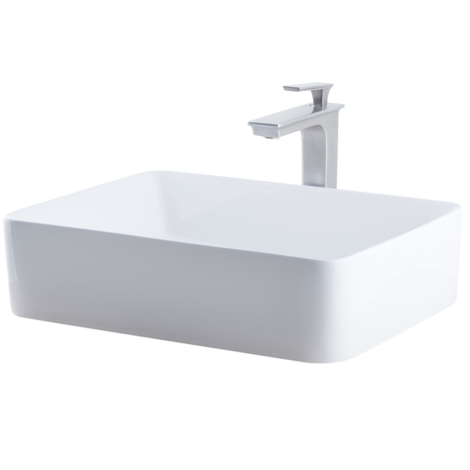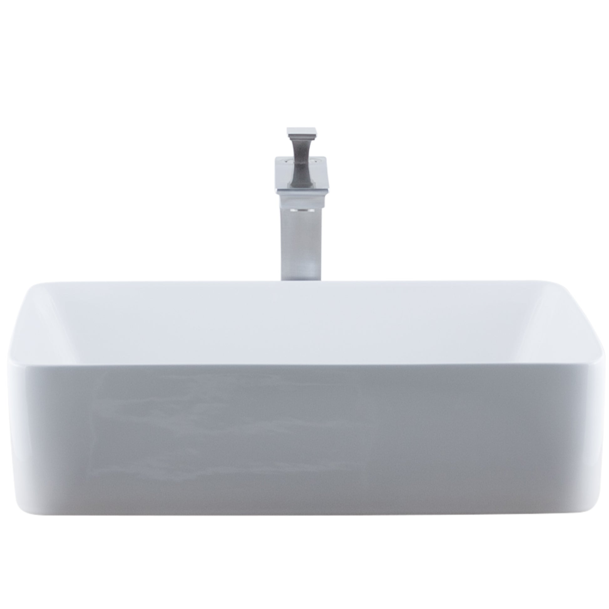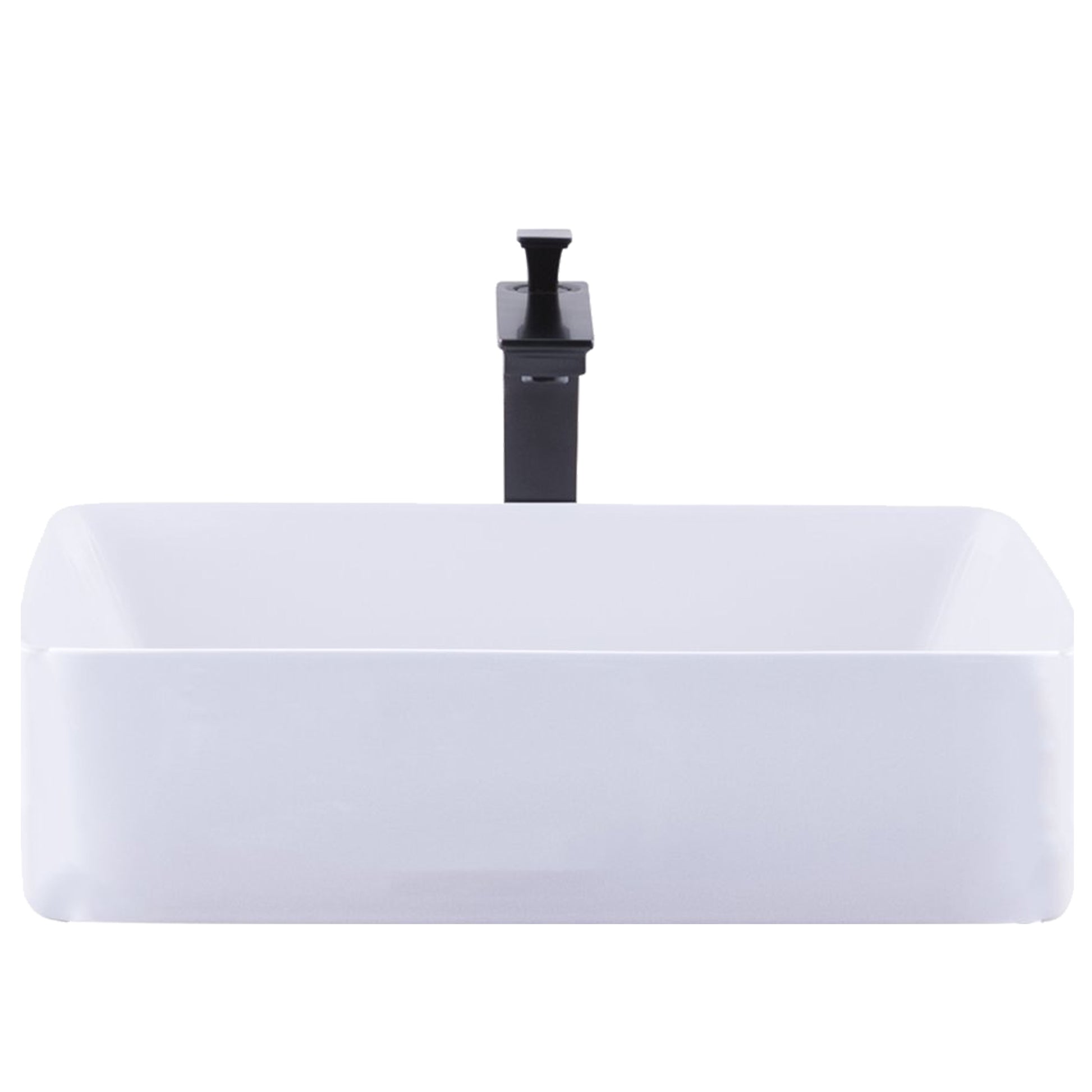 - Rectangle bright white glossy ceramic vessel sink with no overflow